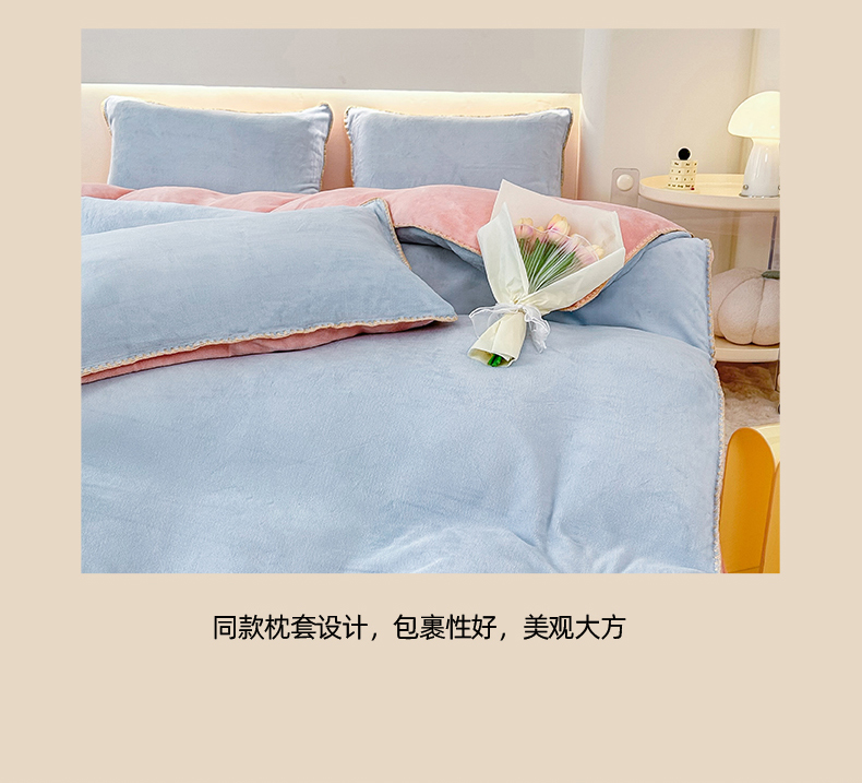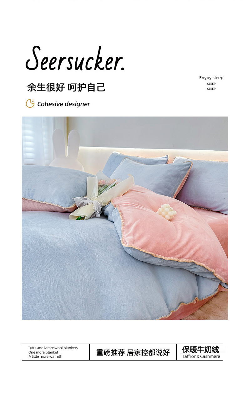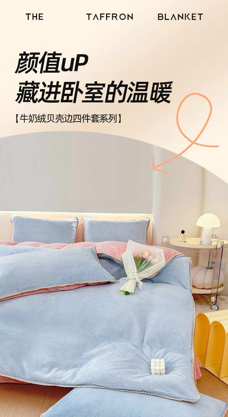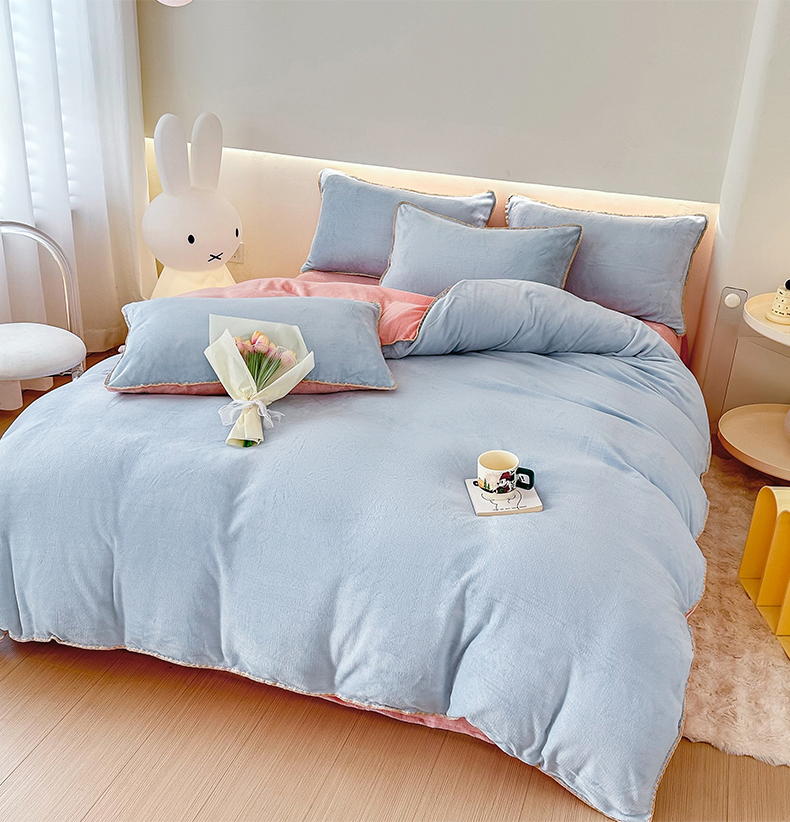 迷仙巢家纺 2023新款贝壳绒四件套 天空蓝加粉玉