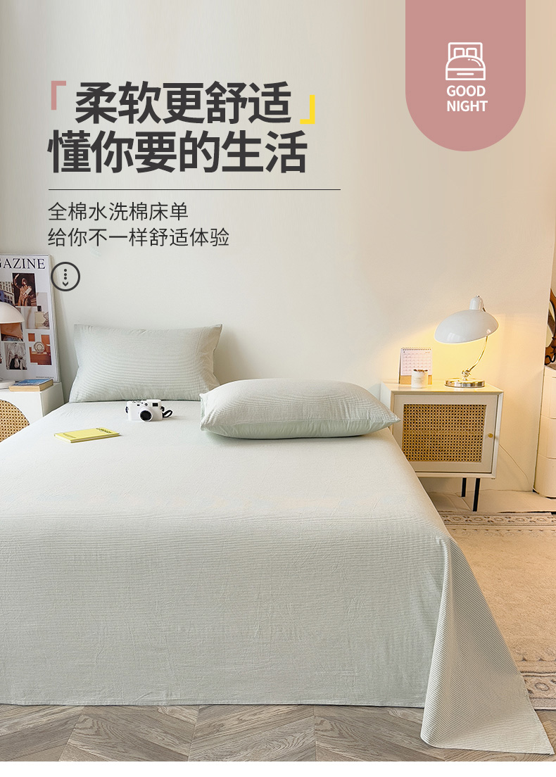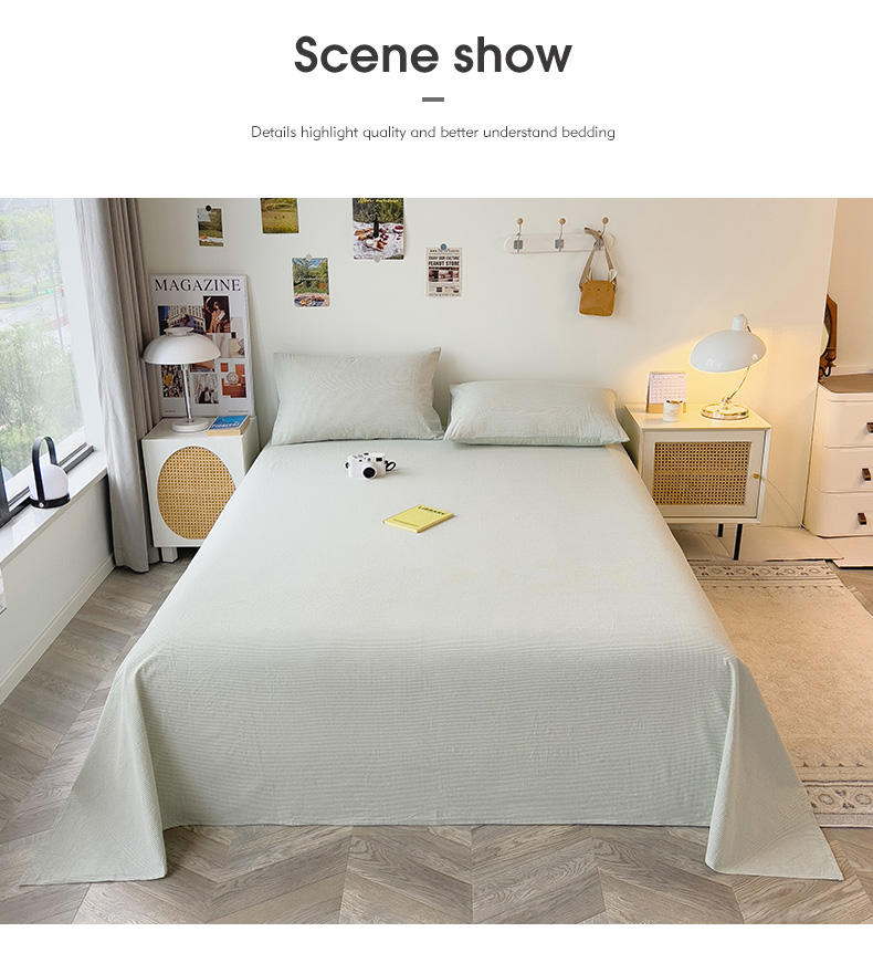 当前位置: 91家纺网 > 商品网购 > 床上用品 > 床单 > 芃成家纺 2023新款全棉水洗棉床单 绿条纹