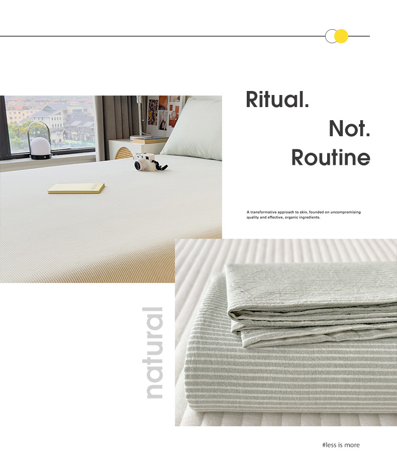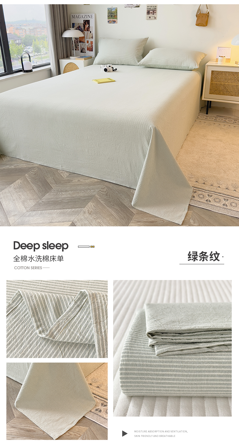 芃成家纺 2023新款全棉水洗棉床单 绿条纹