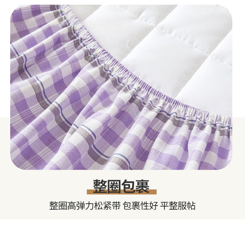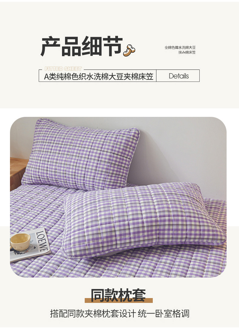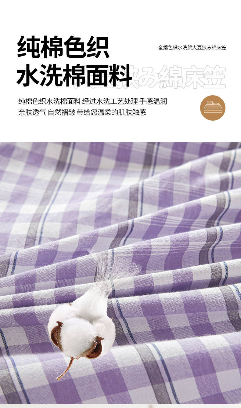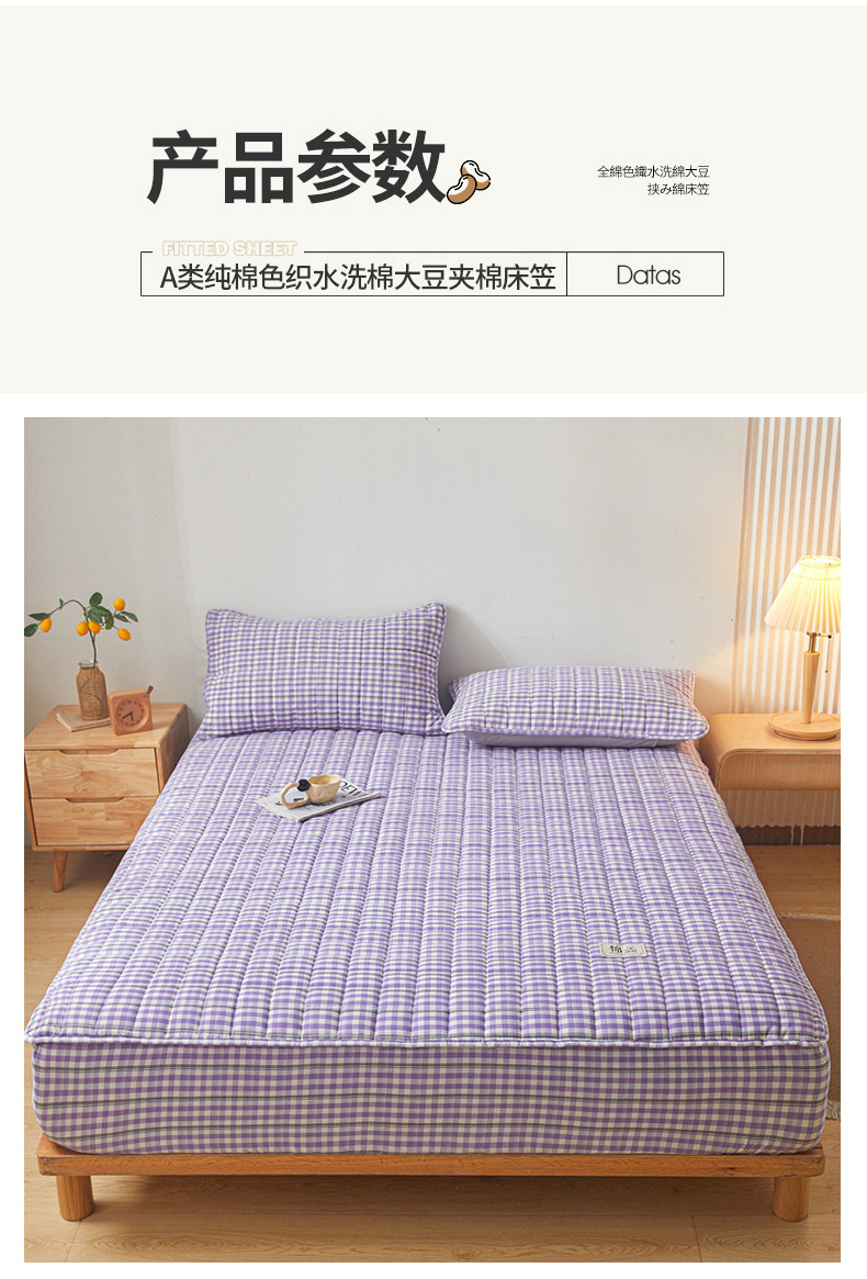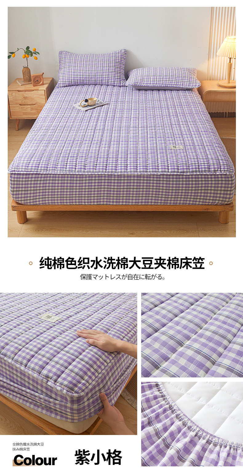 多谷家纺 2023新款纯棉色织水洗棉大豆夹棉床笠 紫小格