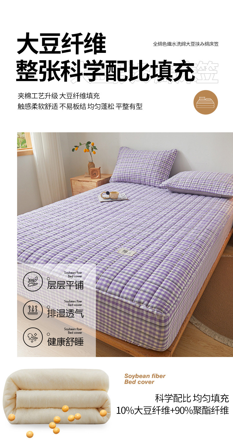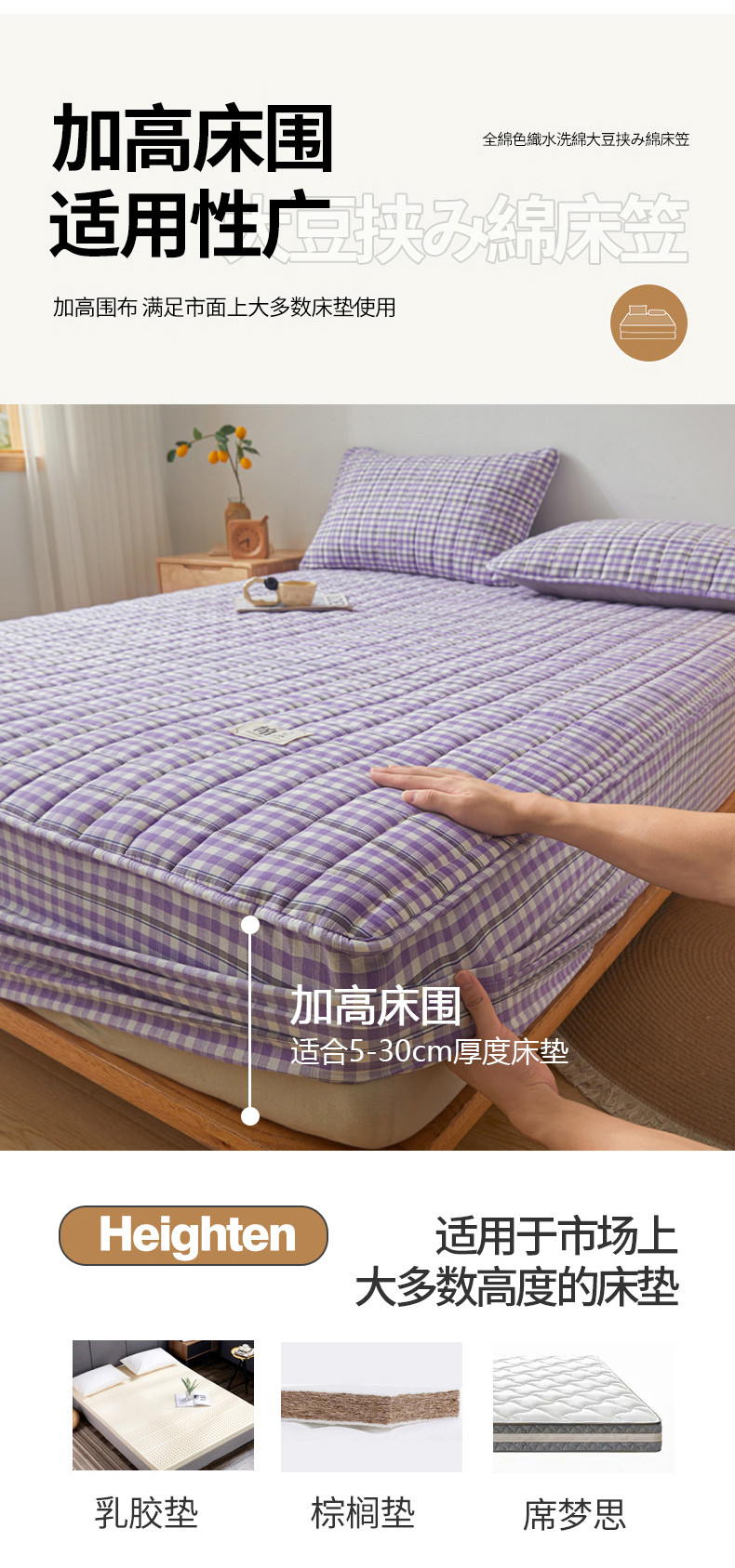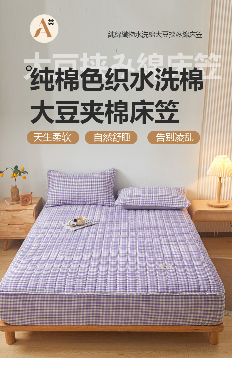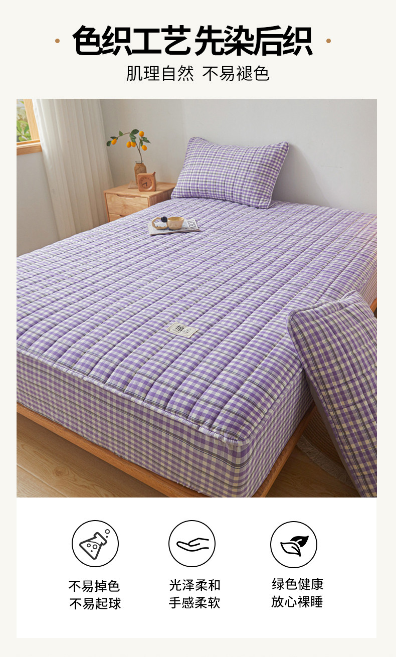多谷家纺 2023新款纯棉色织水洗棉大豆夹棉床笠 紫小格