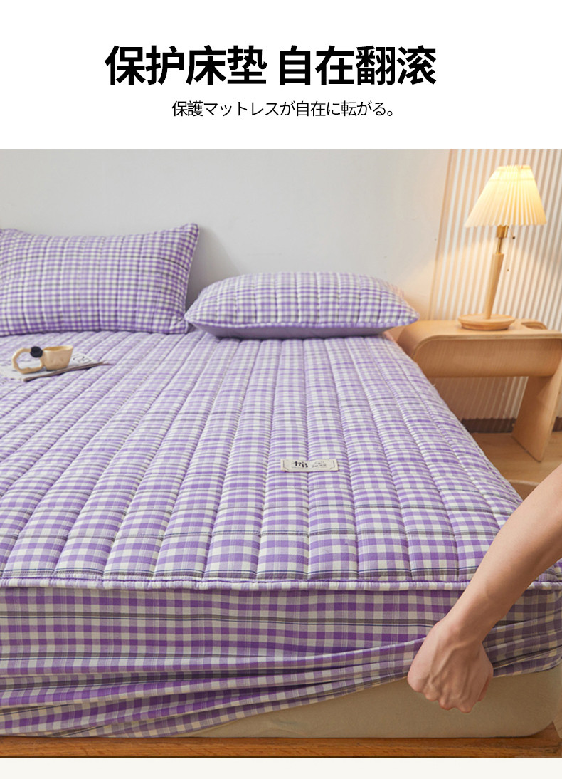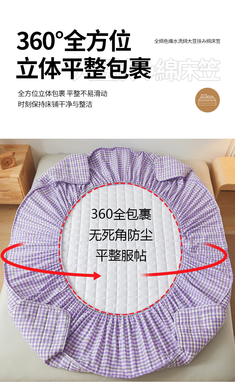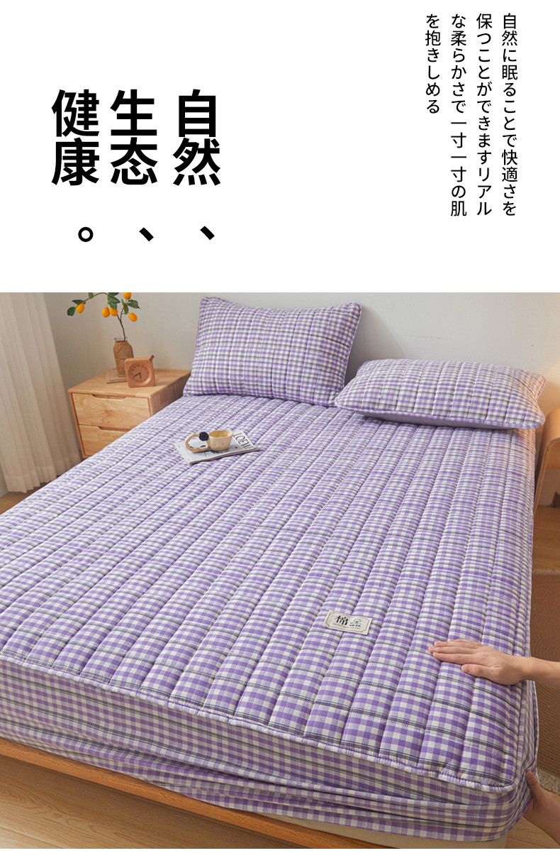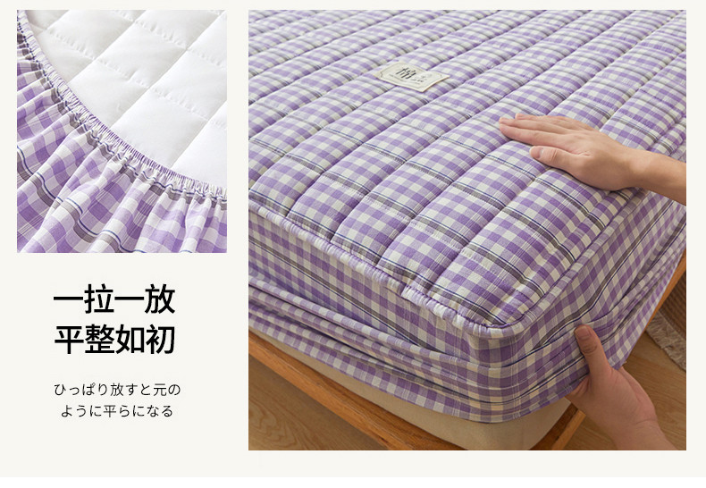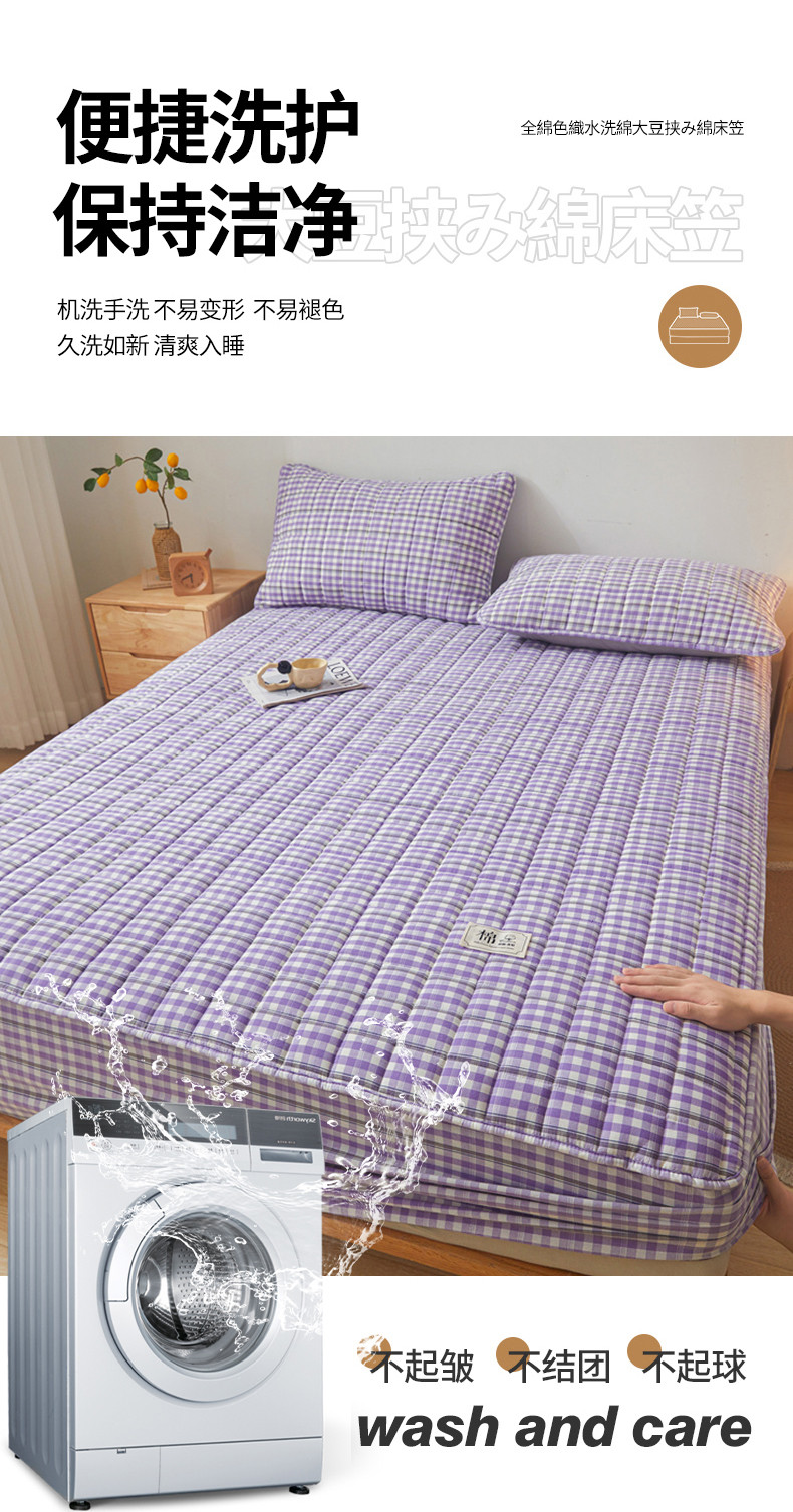 多谷家纺 2023新款纯棉色织水洗棉大豆夹棉床笠 紫小格