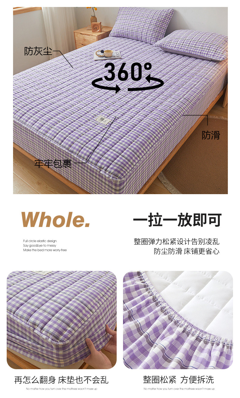 • 91家纺网 家纺一手货源 找家纺 多谷家纺 2023新款纯棉色织水洗棉大豆夹棉床笠 紫小格