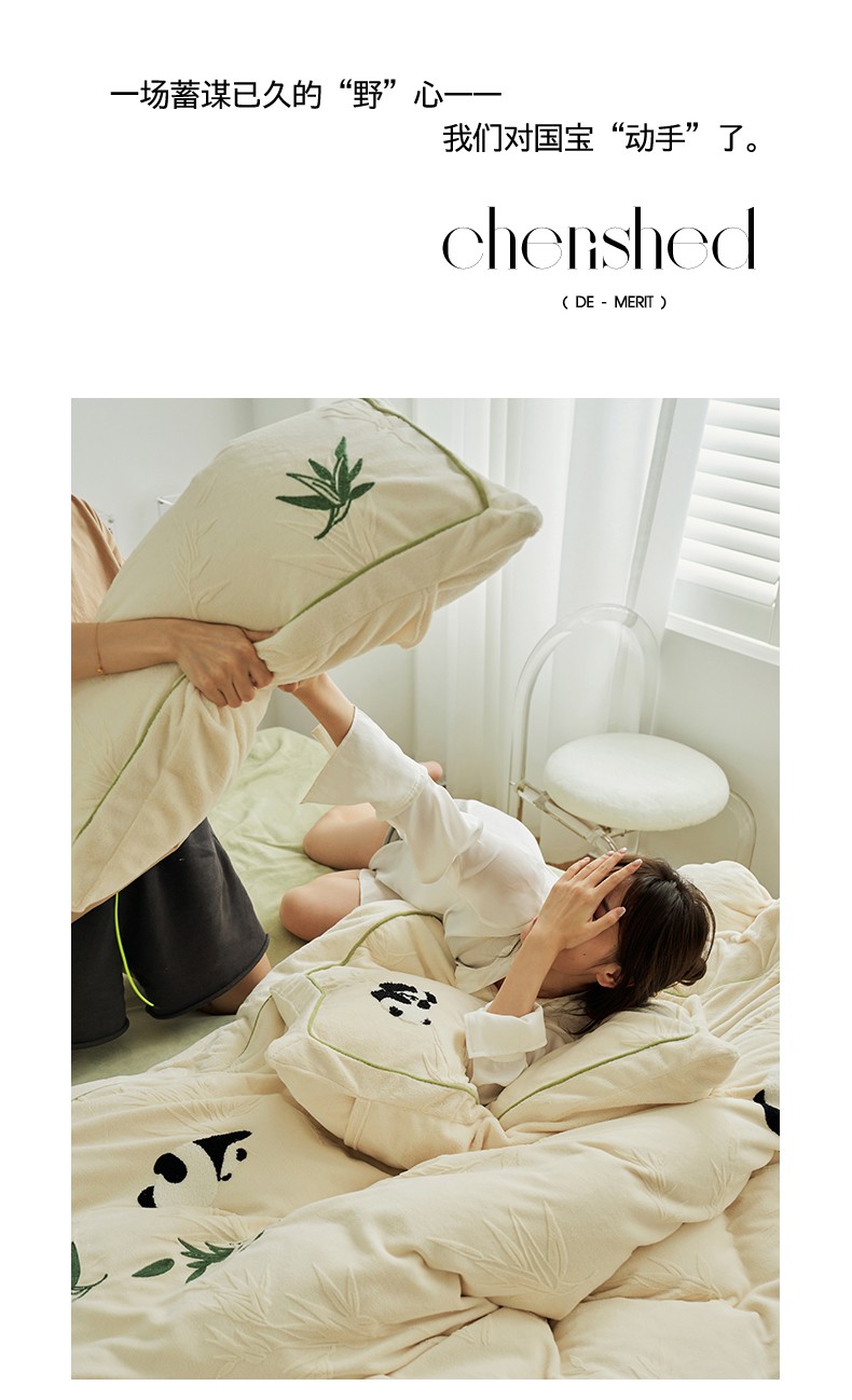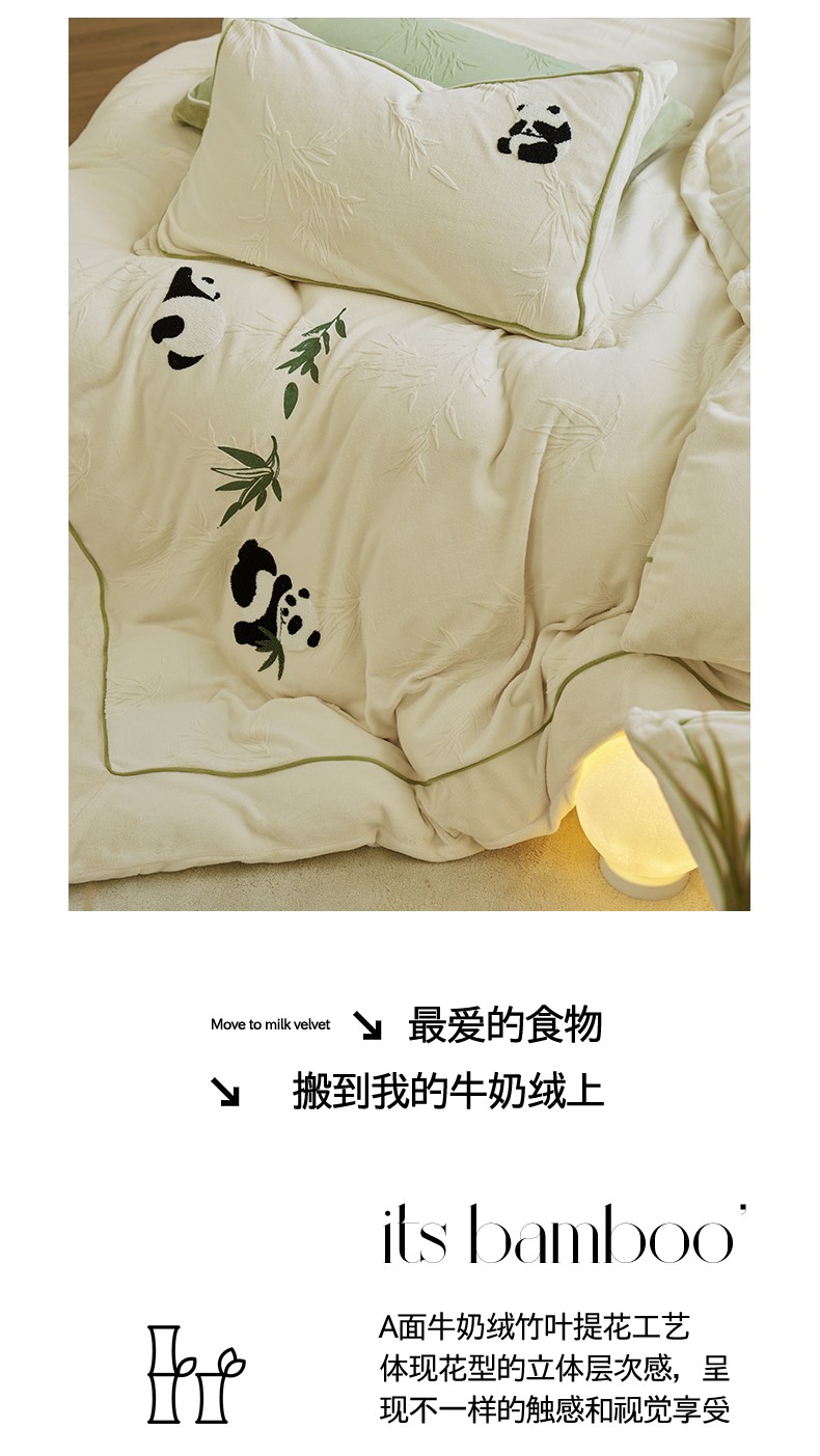 当前位置: 91家纺网 > 商品网购 > 床品套件 > 四件套 > 牛奶绒四件套 > 总安莱生活2023专版锦芙牛奶绒毛巾绣四件套情绪熊猫款-清新自然光风格