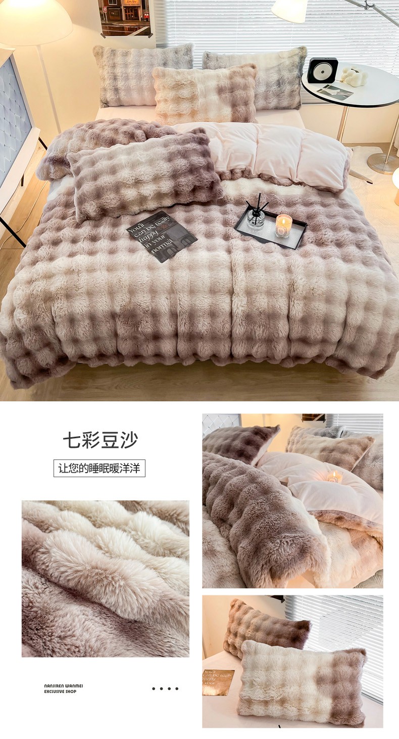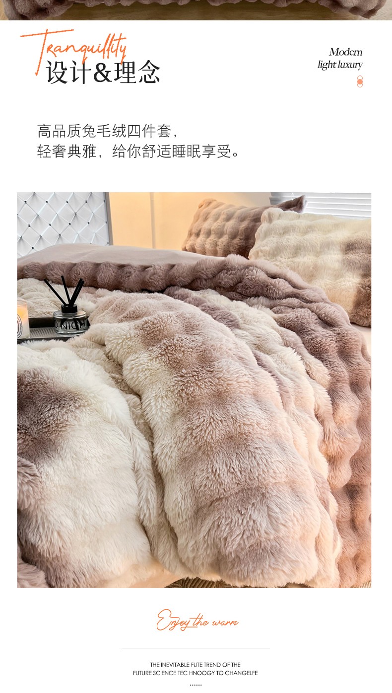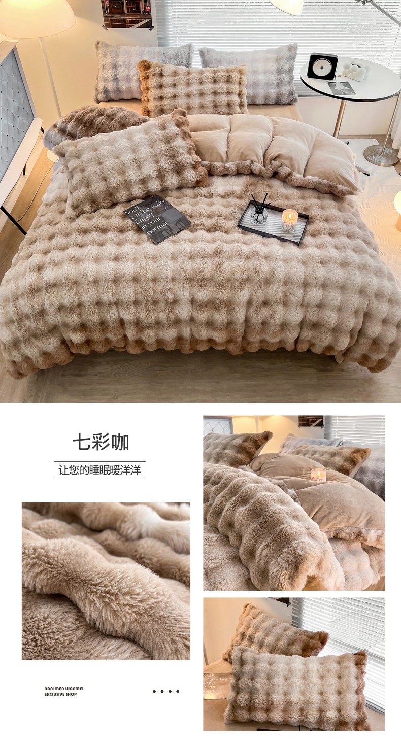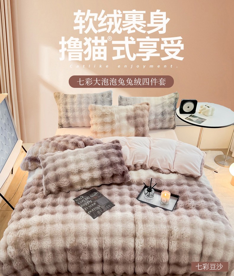 (总) 金爱家 2023新款七彩大泡泡兔兔绒兔毛绒四件套
