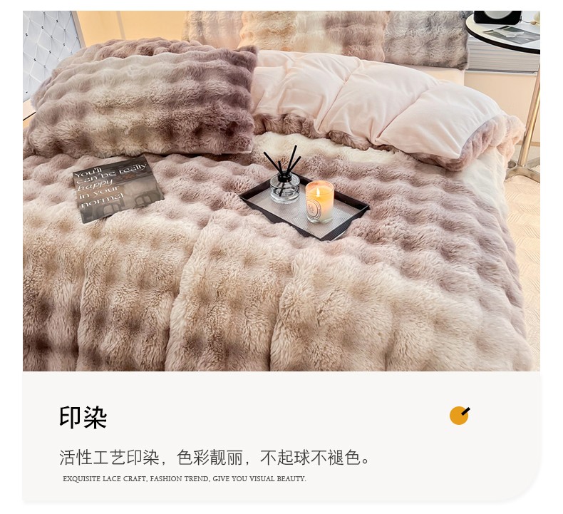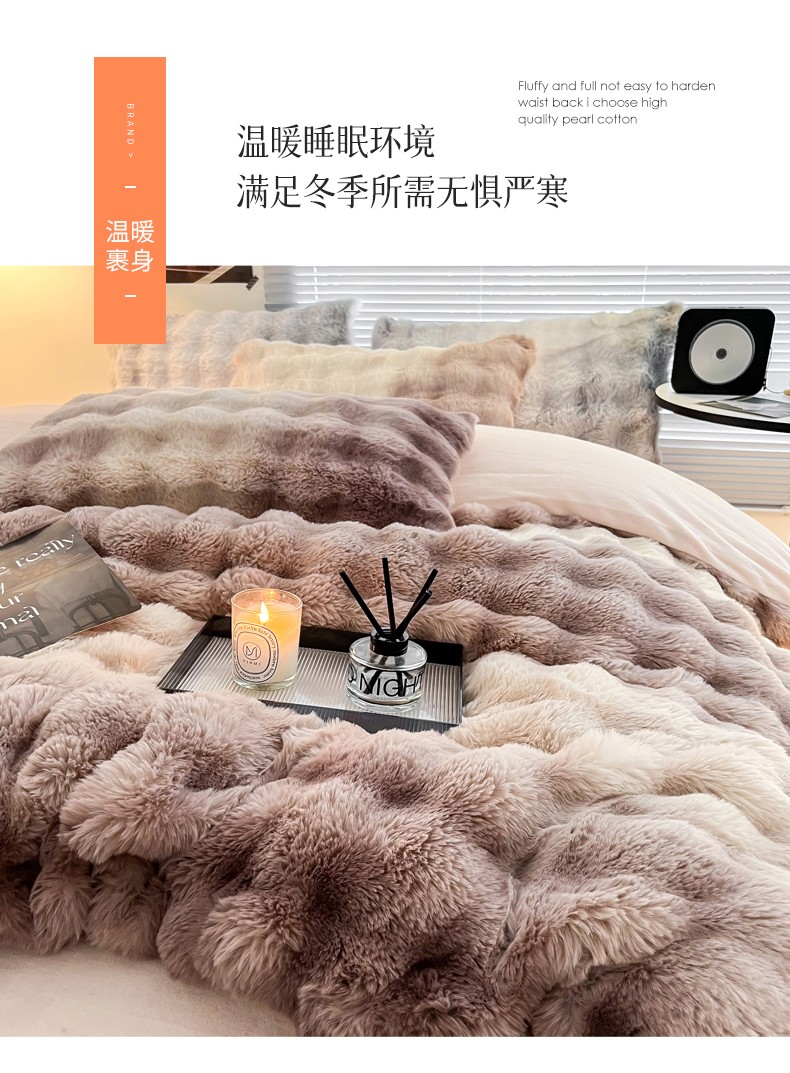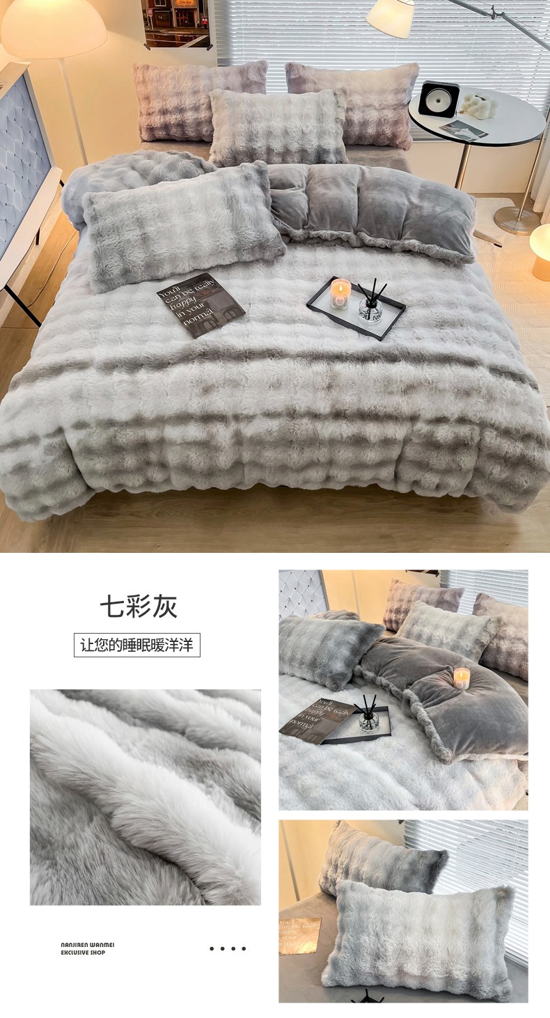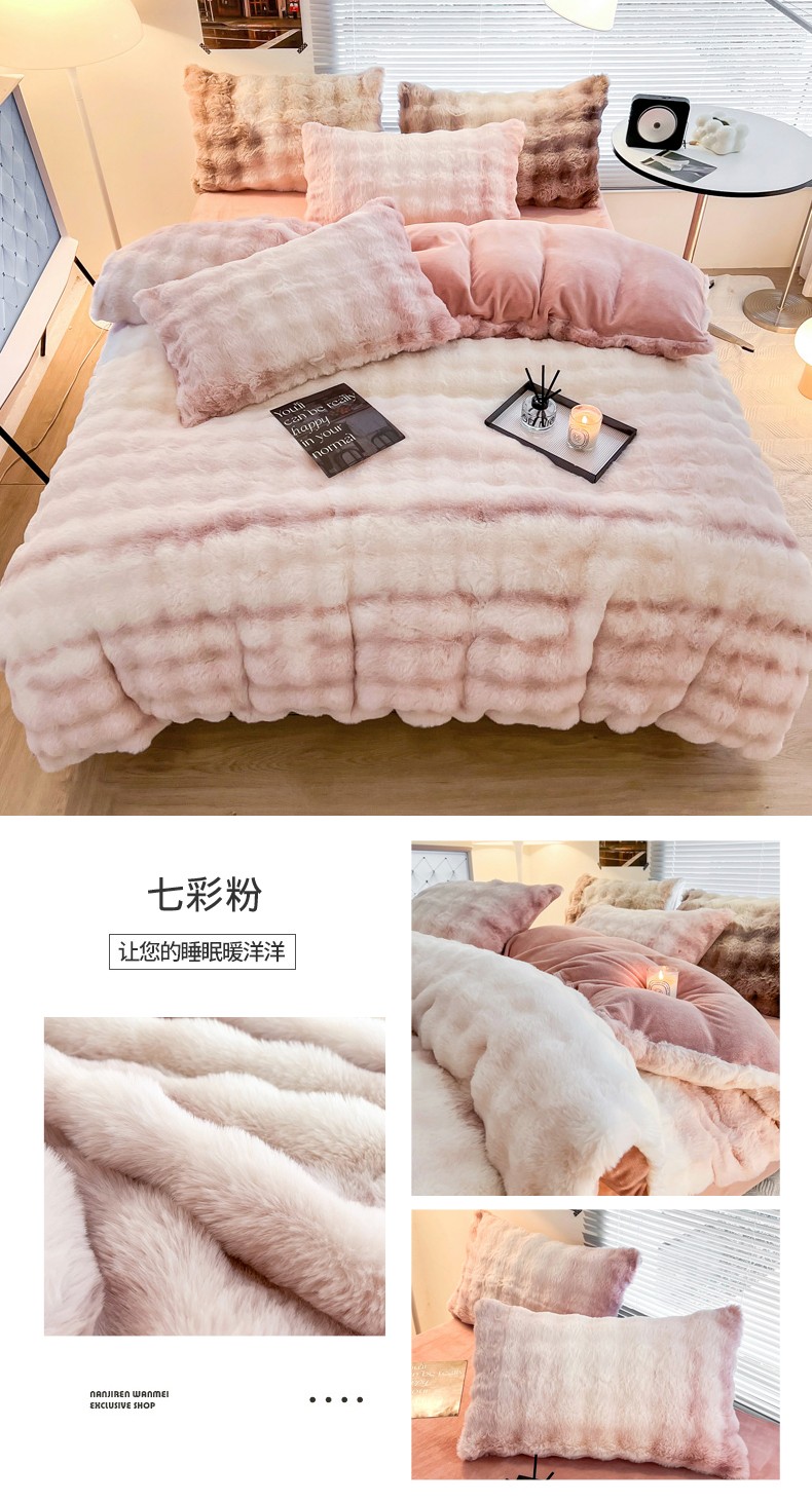 (总) 金爱家 2023新款七彩大泡泡兔兔绒兔毛绒四件套