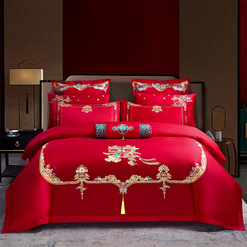 当前位置: 91家纺网 > 商品网购 > 床品套件 > 四件套 > 婚庆四件套 > 振翼 2025新款40s全棉丝光喷气婚庆四件套多件套 喜事连连
