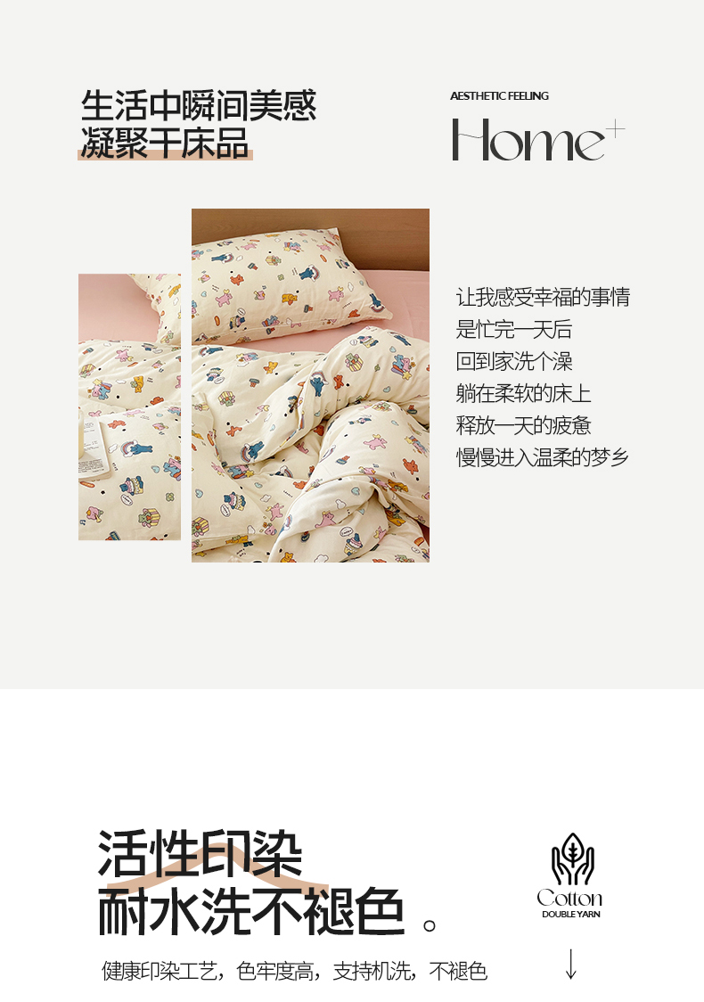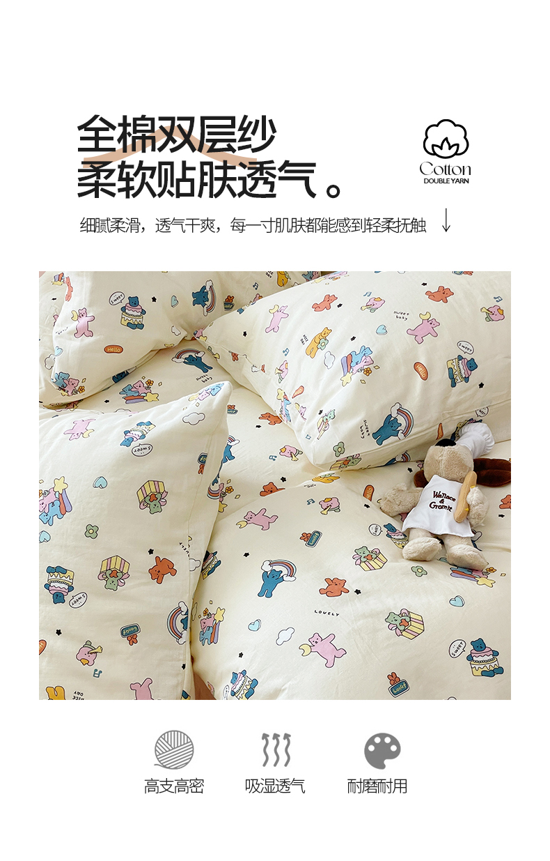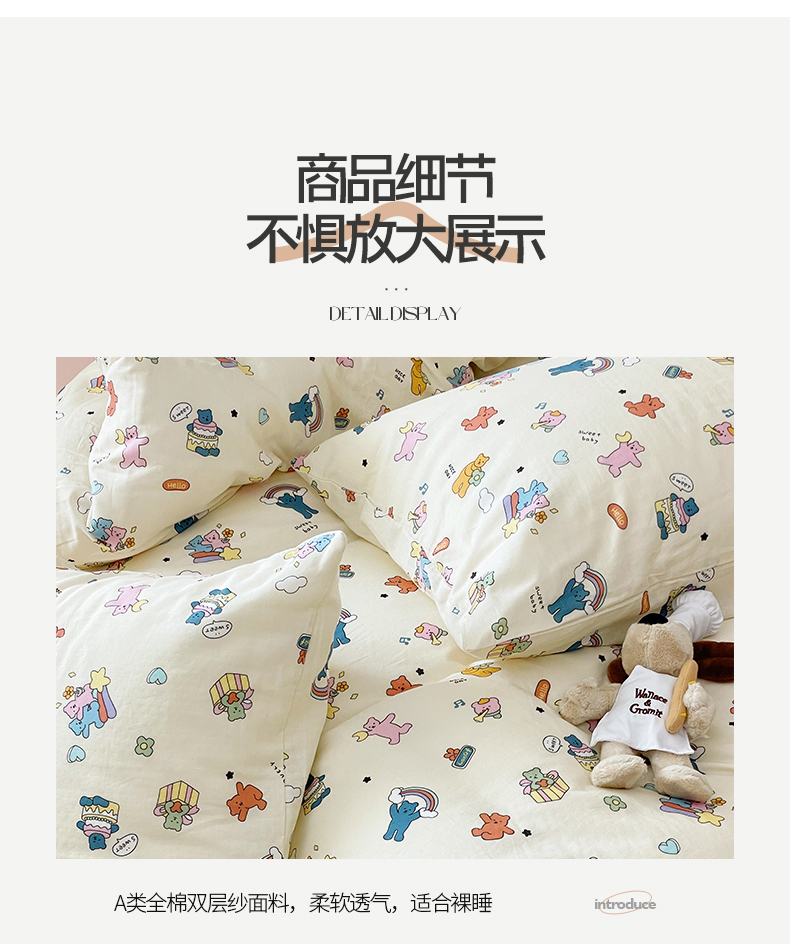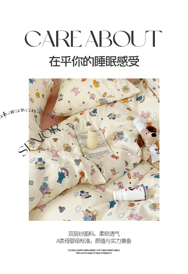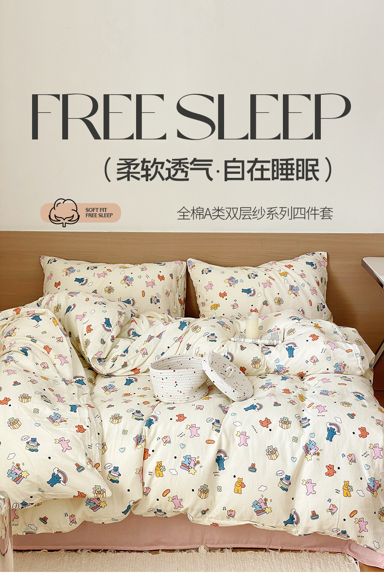 当前位置: 91家纺网 > 商品网购 > 床品套件 > 四件套 > 全棉普通四件套 > 窝米 2023秋季新品全棉双层纱四件套系列 快乐萌宠