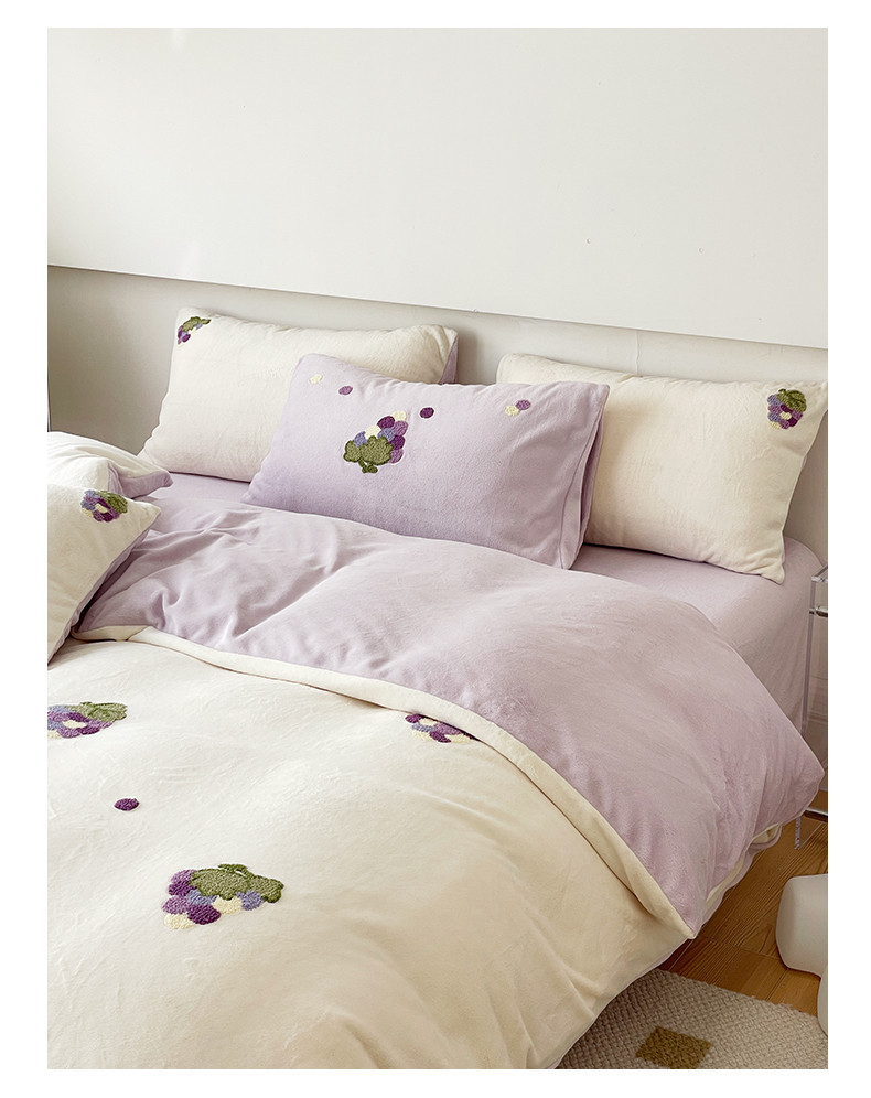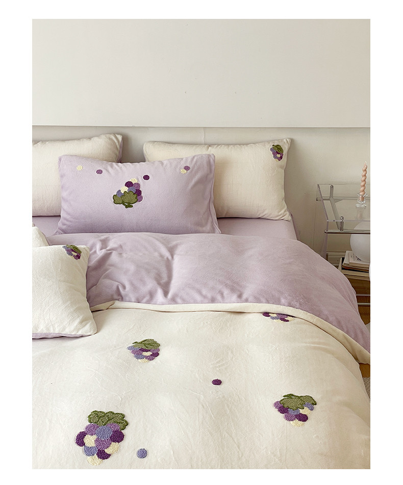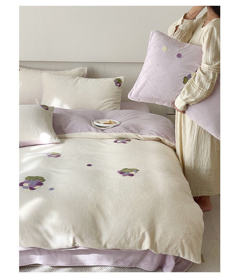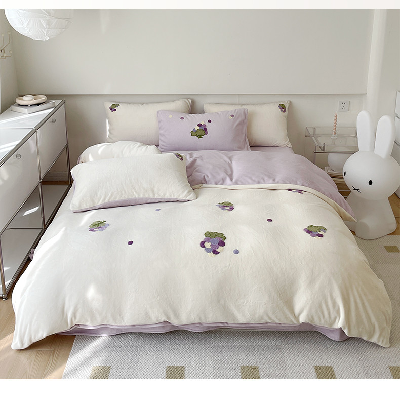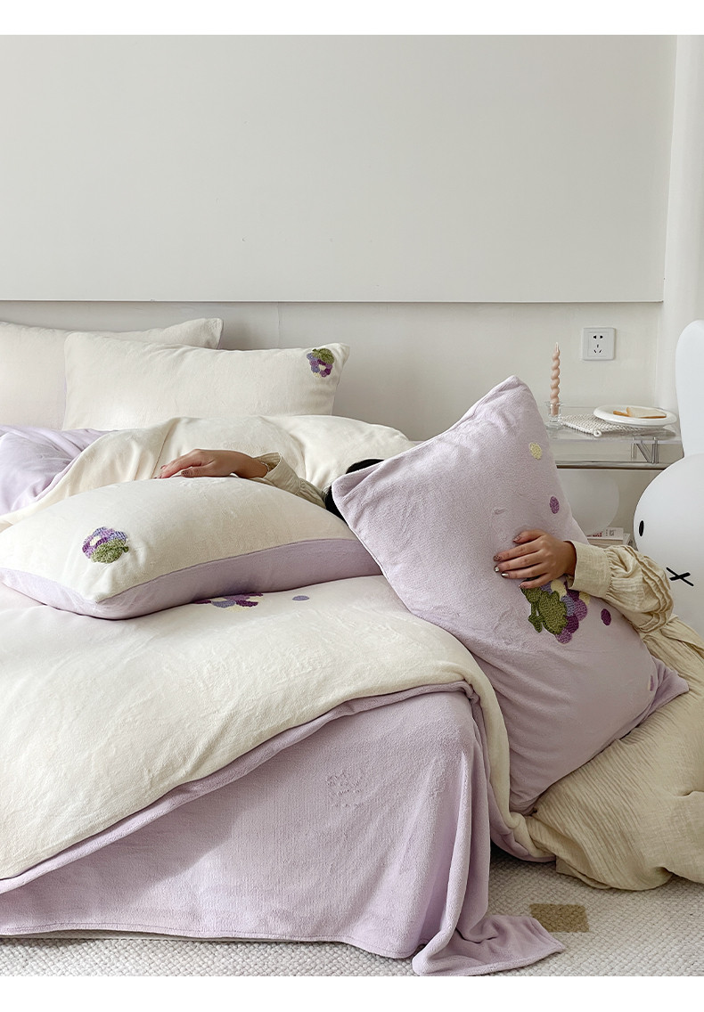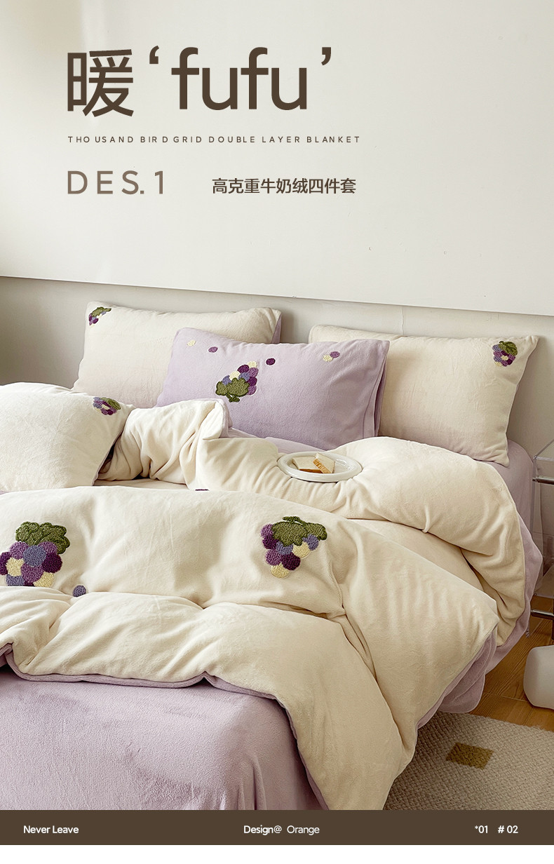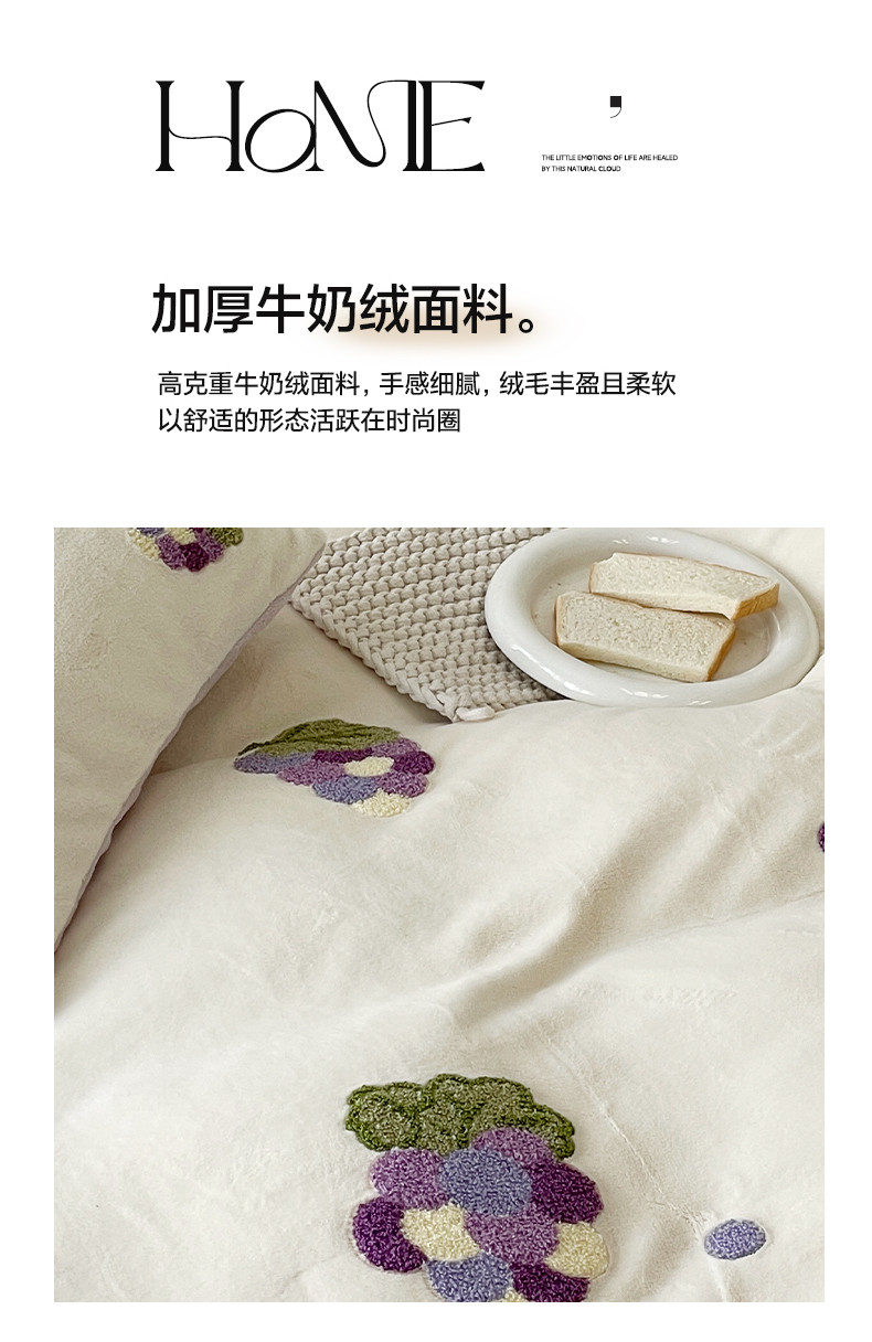 当前位置: 91家纺网 > 商品网购 > 床品套件 > 四件套 > 牛奶绒四件套 > 眠屿家纺 2023新款加厚高克重牛奶绒单边四件套 紫葡萄