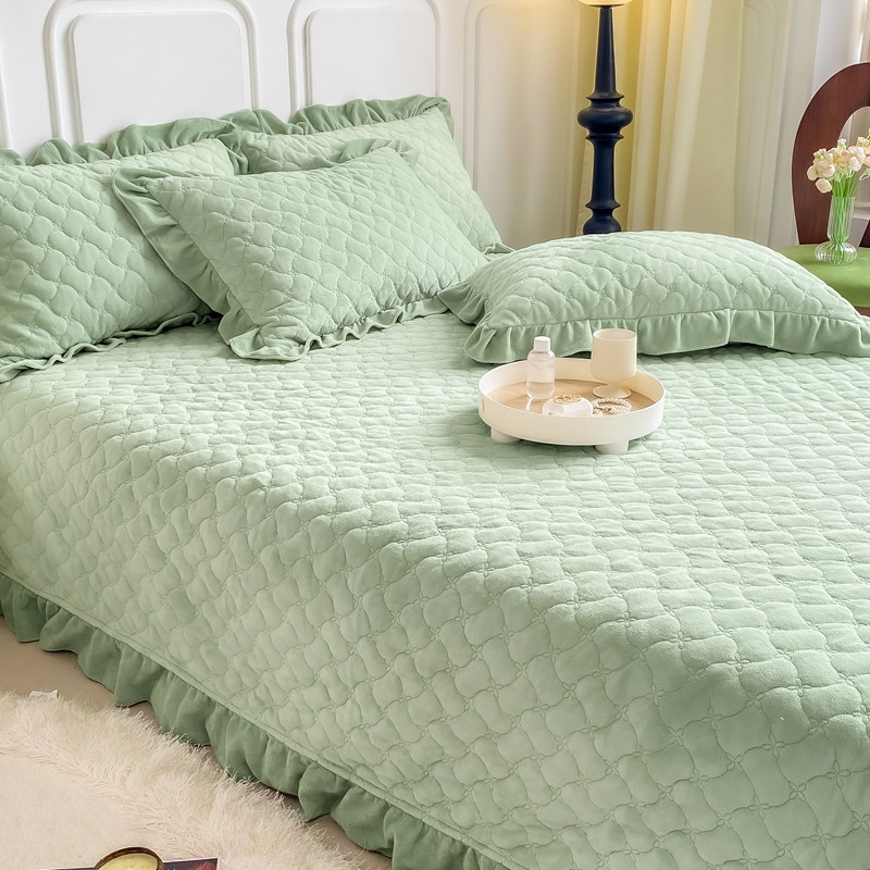 上喜 热卖牛奶绒珍珠床盖款三件套四件套 青绿色