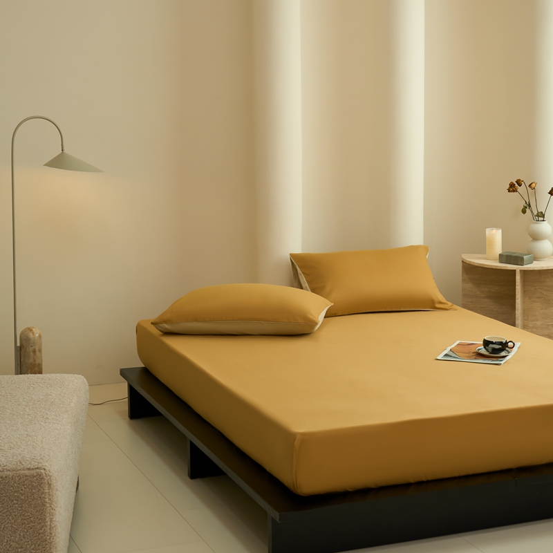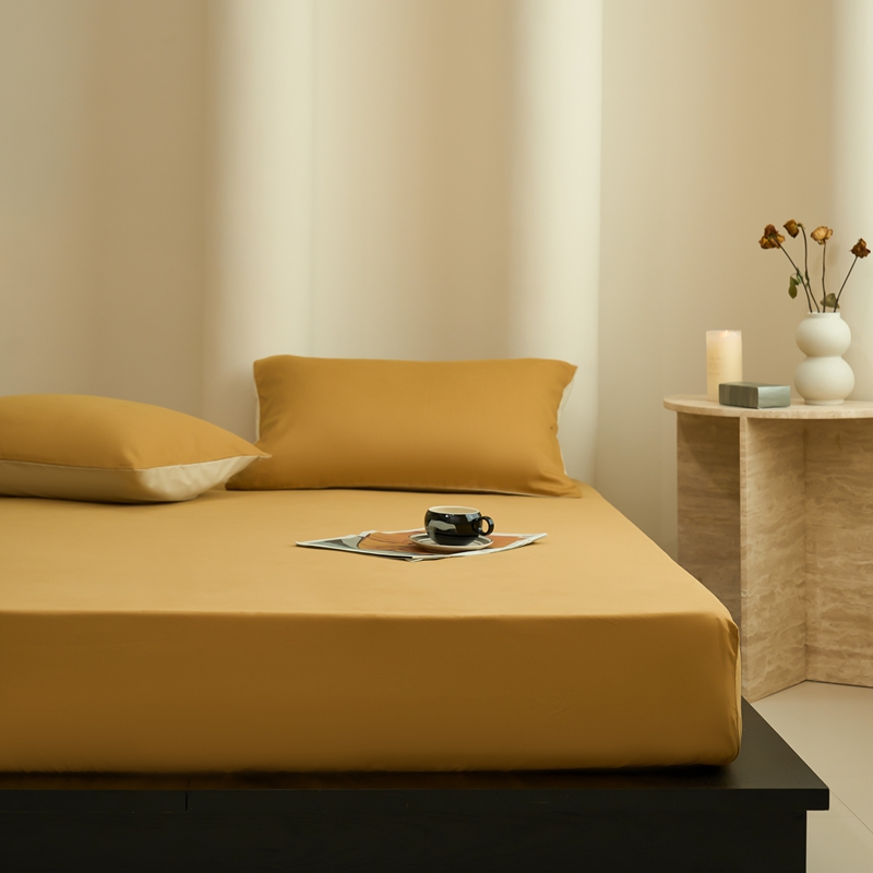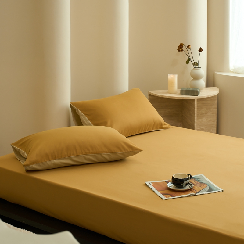 鹿班家居 2023新款100s全棉磨毛单品床笠 南瓜色