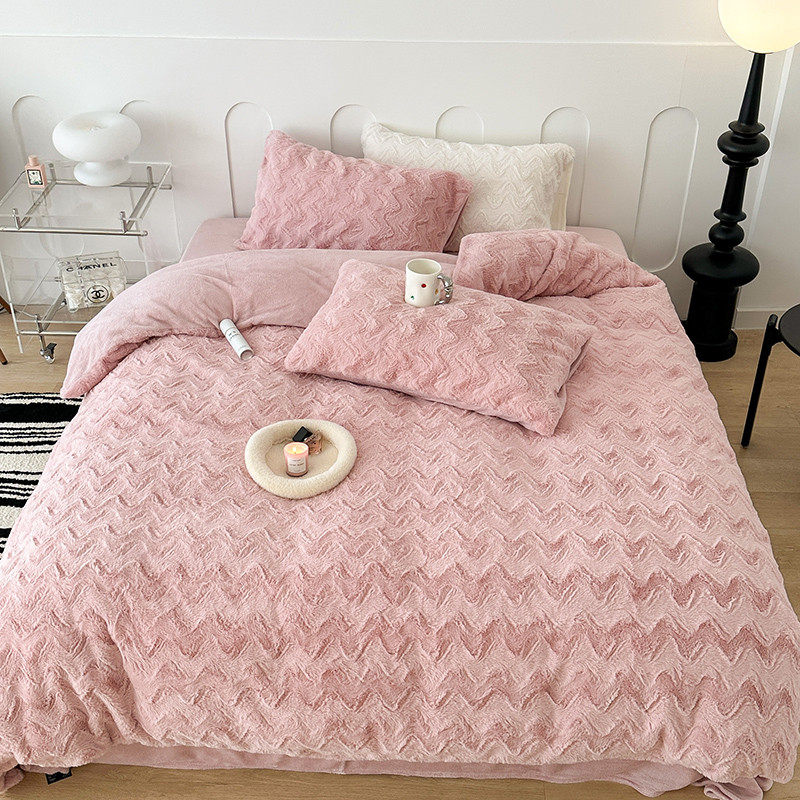 总 昔可家纺 2023新款ins风纯色兔兔绒兔毛四件套