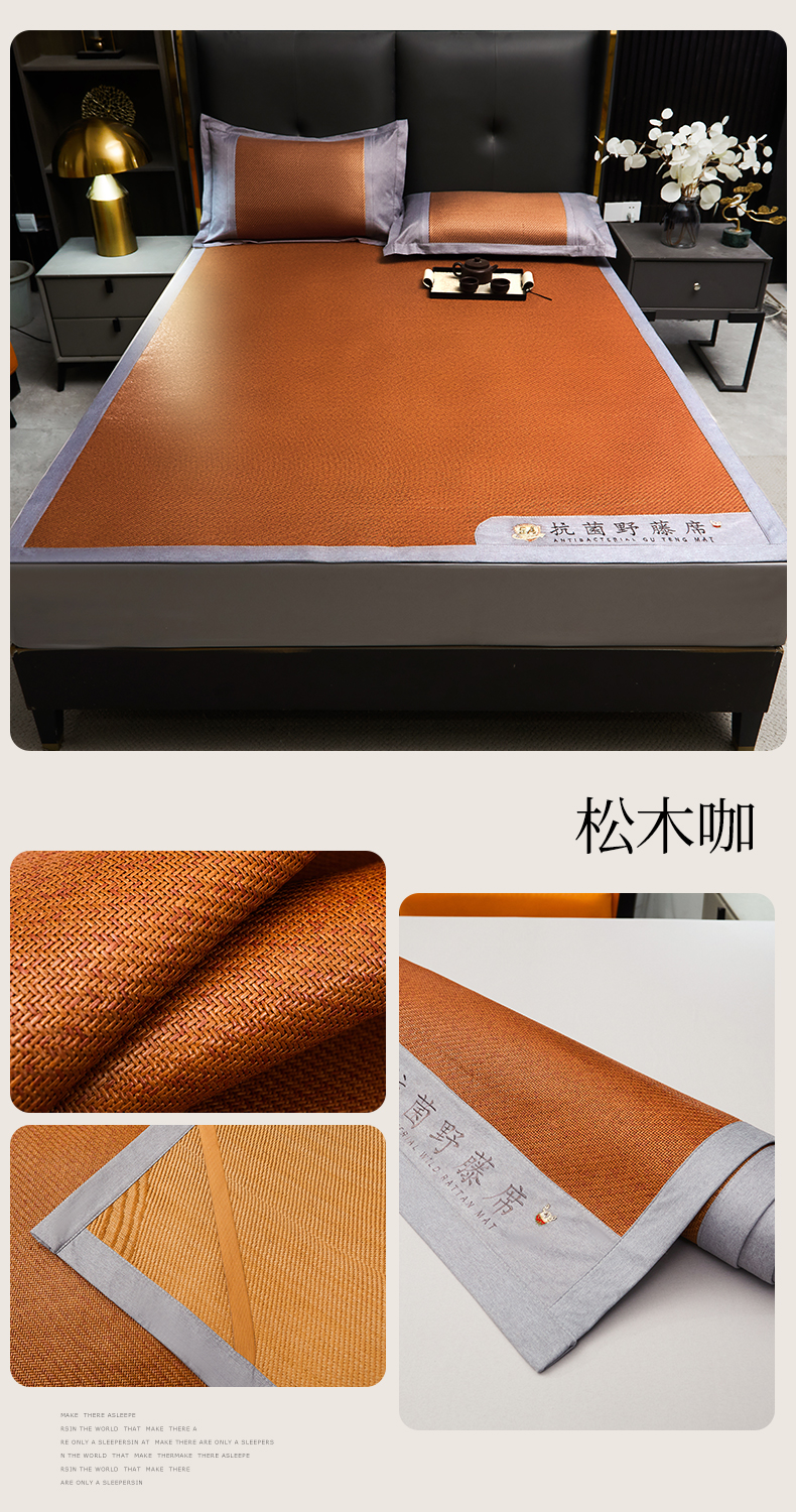 商品名称:鑫姿席业 2025新款5A抗菌野藤席系列床单款 松木咖
