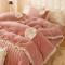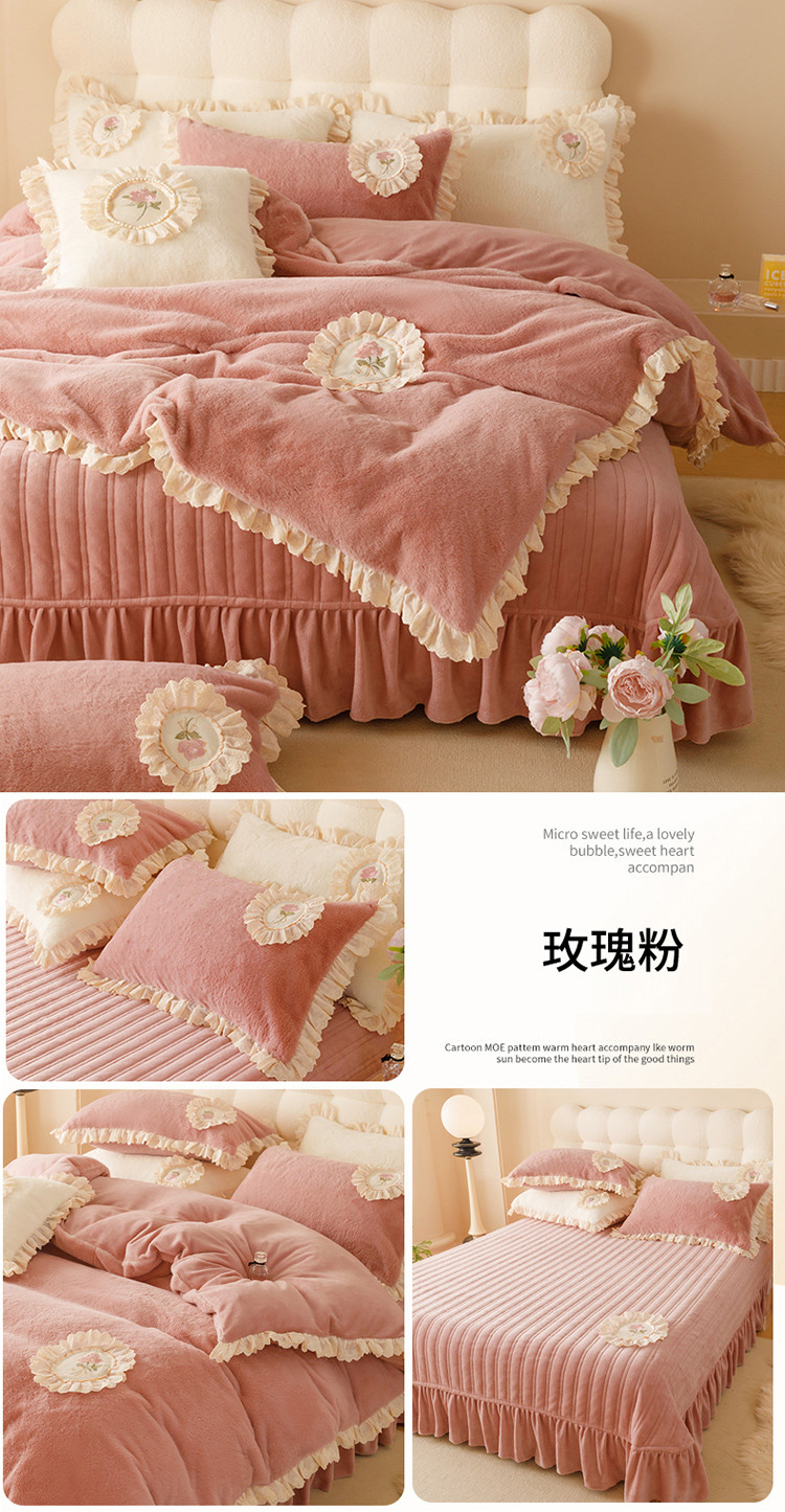 胜权 新款AB版仿兔绒牛奶绒加厚韩国绒刺绣夹棉床盖四件套 珊瑚粉