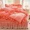 12斤230g全消光牛奶绒夹棉床盖四件套兔兔绒绒蕾丝床裙款四件套