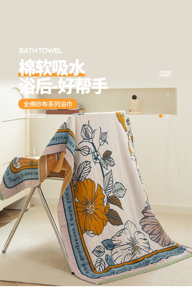 当前位置: 91家纺网 > 商品网购 > 居家日用 > 毛巾/浴巾/浴袍 > 浴巾 > 雯雨家纺 2023新款全棉卡通系列纱布浴巾 花仙子-粉