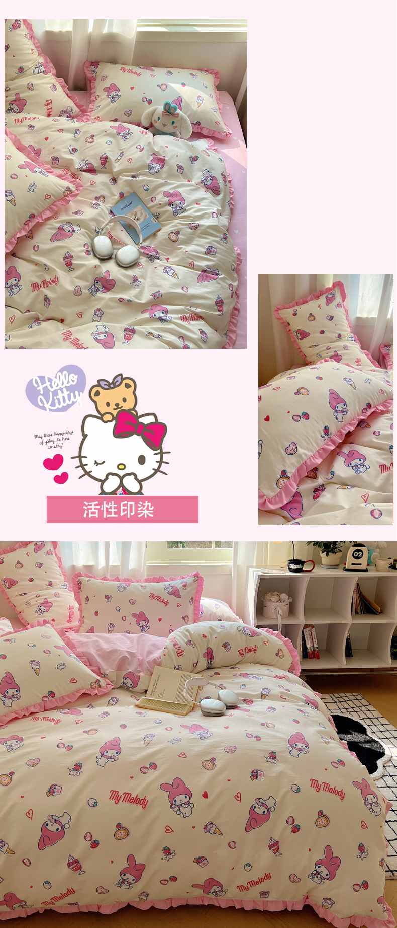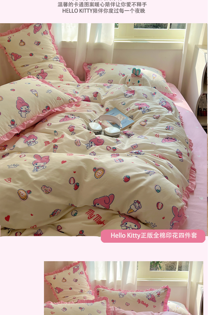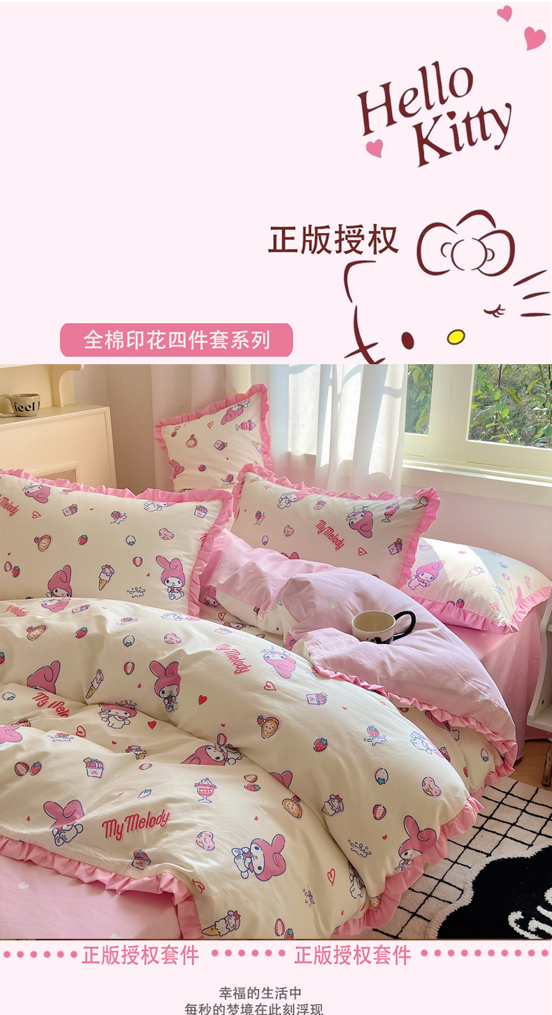 (总)三朵家纺 2024新款全消光三丽鸥印花牛奶绒系列四件套,爱心凯蒂,街舞库洛米,凯蒂公主,乐园KT,漫画帕恰,美好帕恰,美乐蒂格格,淘气帕恰,甜蜜公主KT,童心帕恰,艺术家库洛米,运动帕恰,字母帕恰