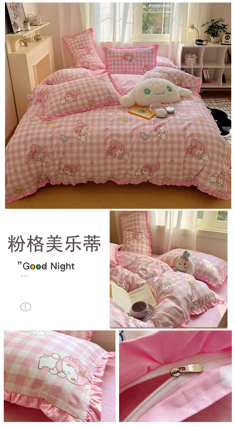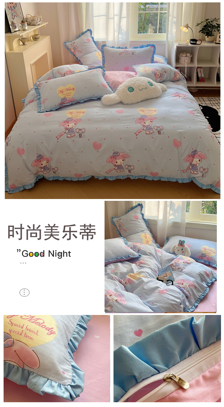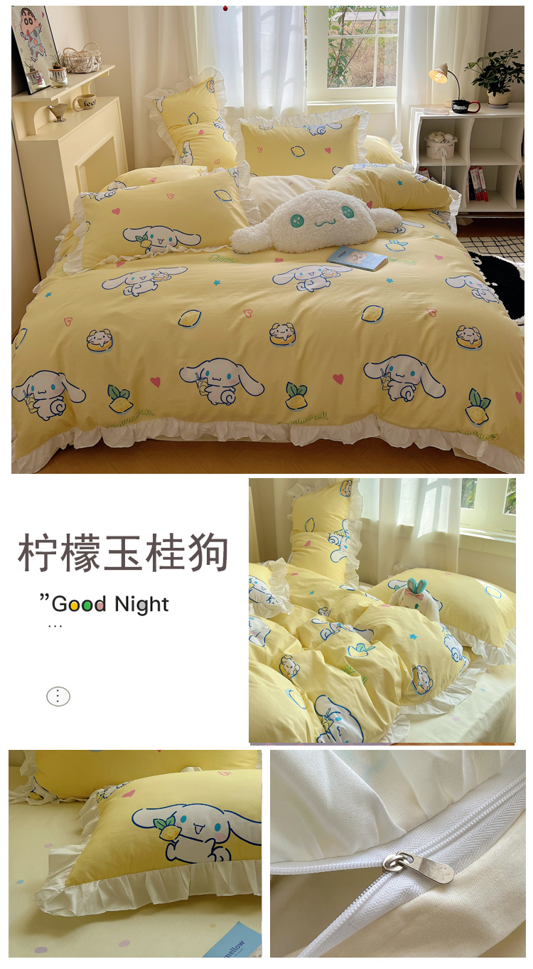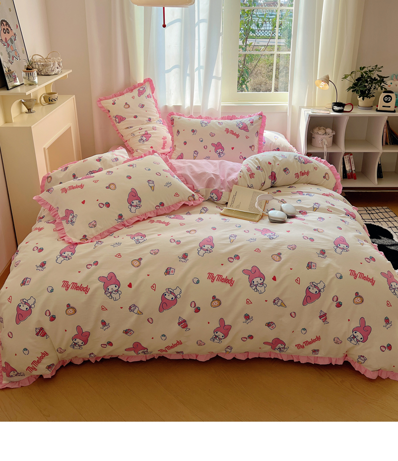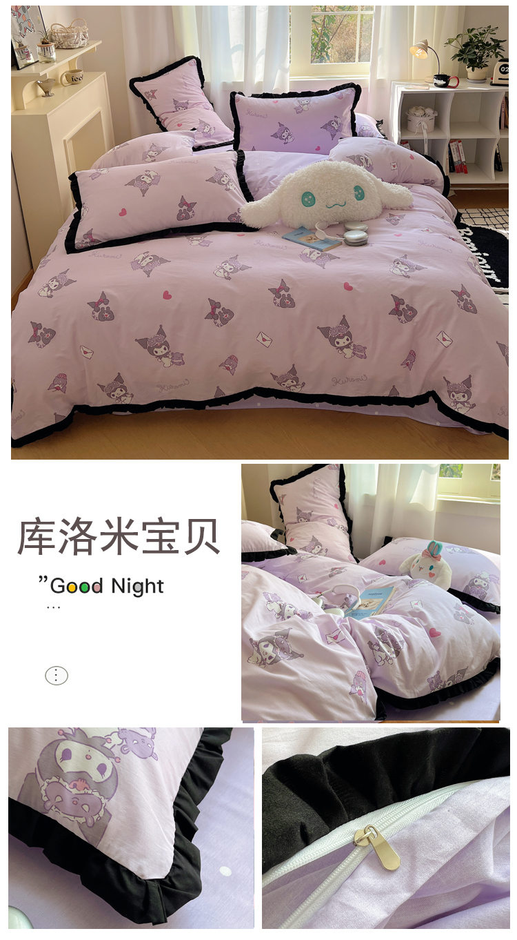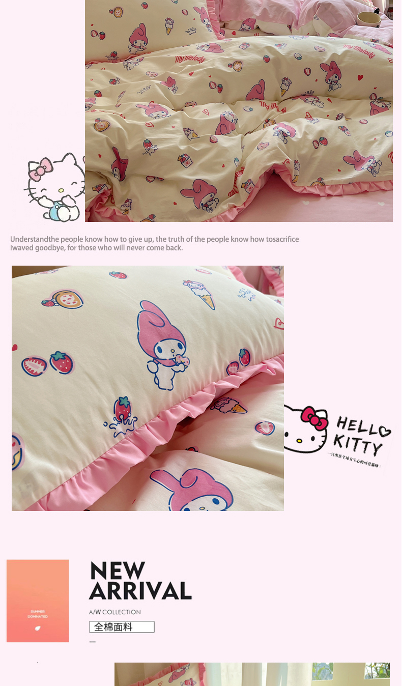 商品名称:(总)三朵家纺 2023新款全棉花边款三丽鸥系列四件套