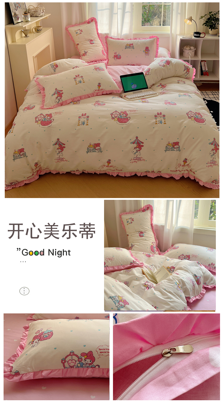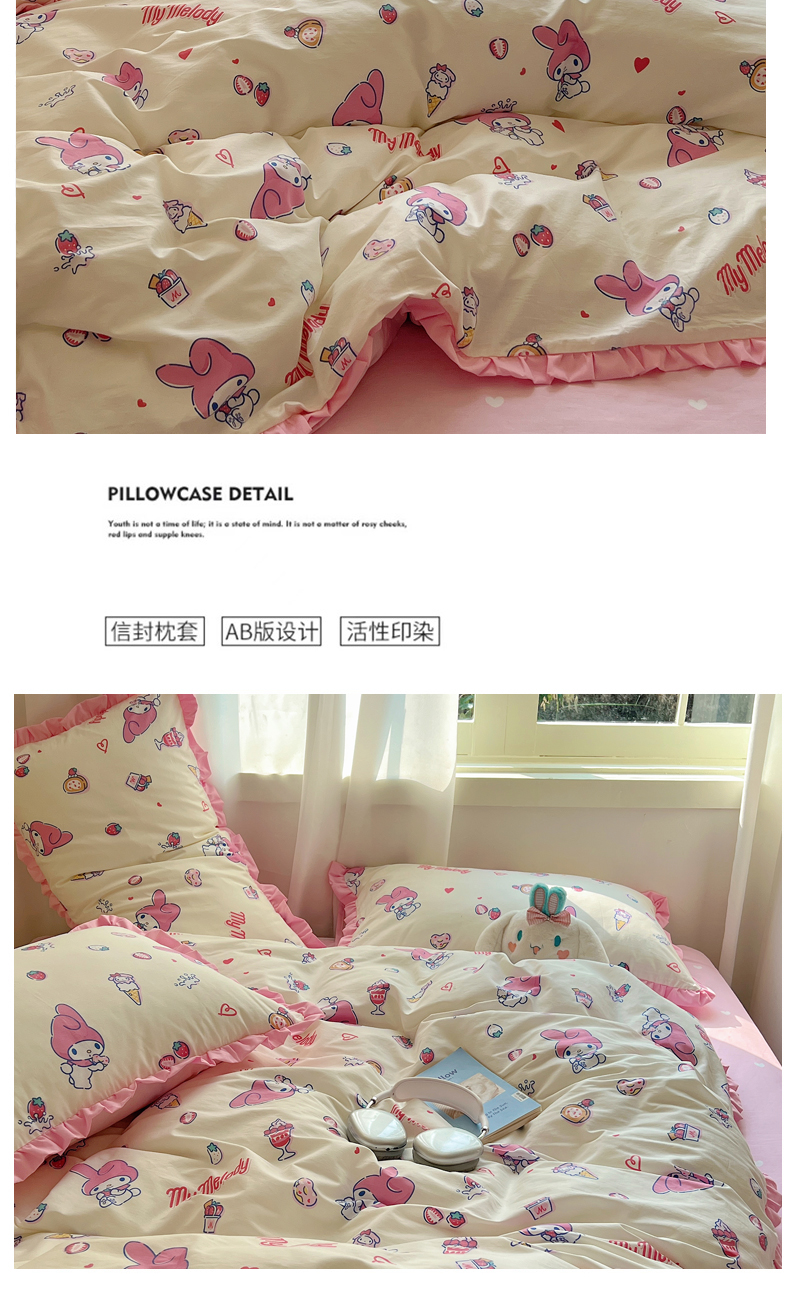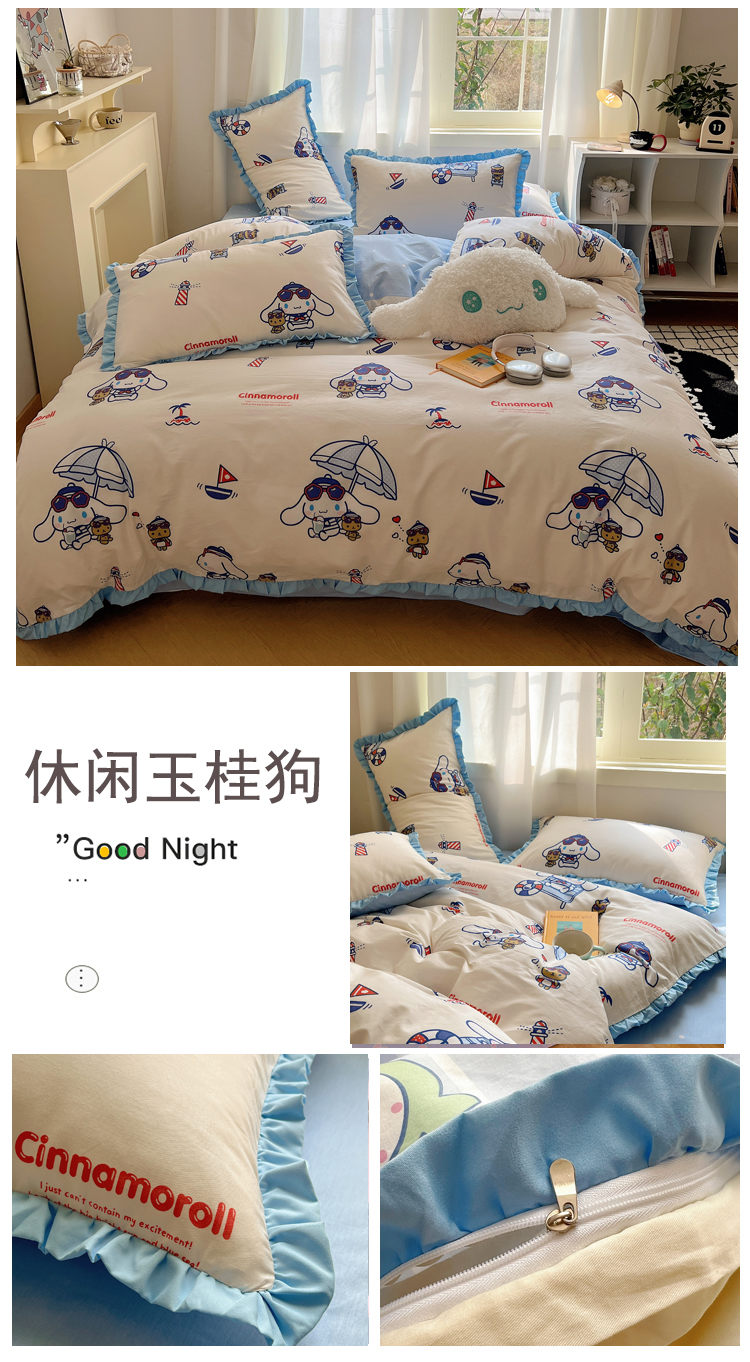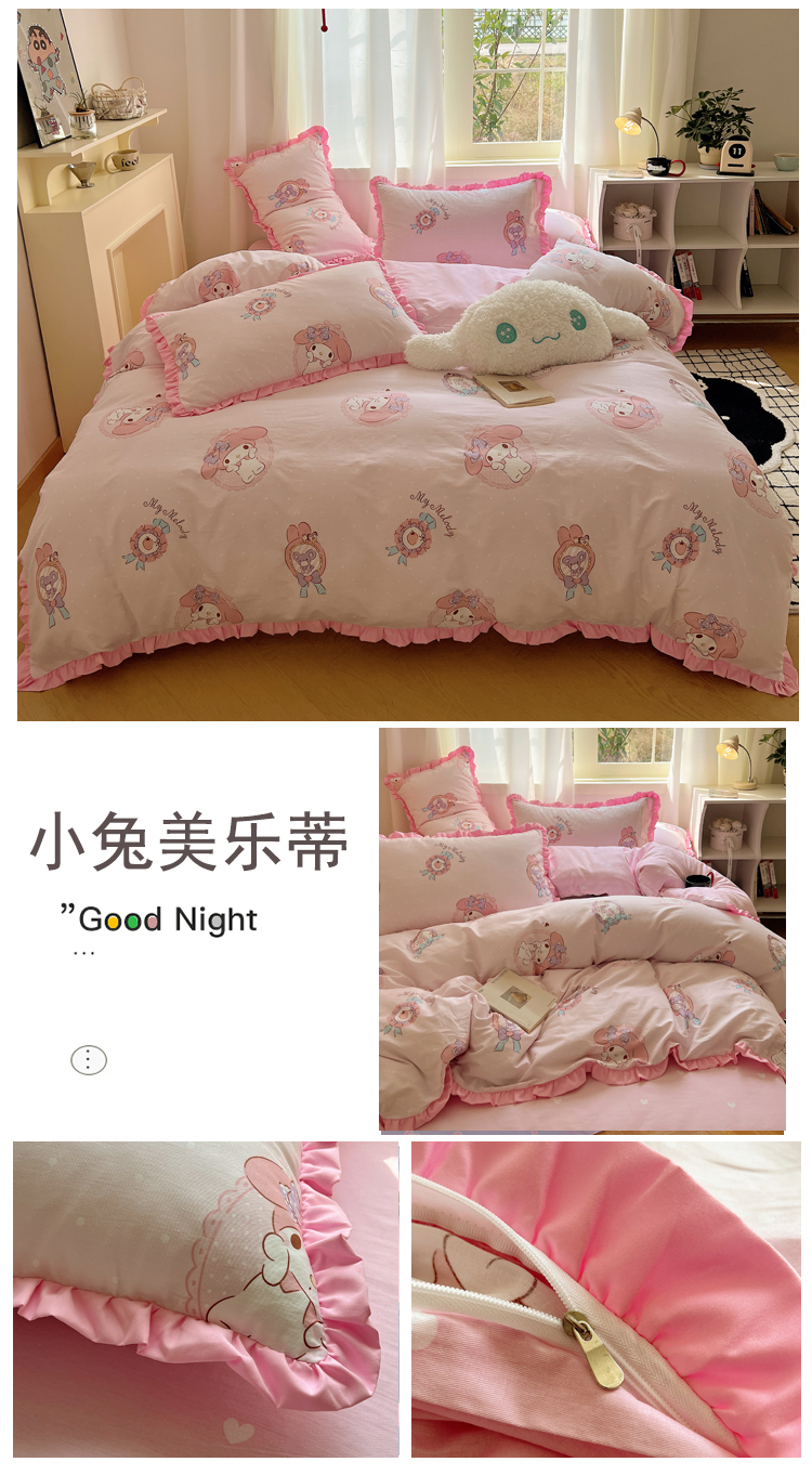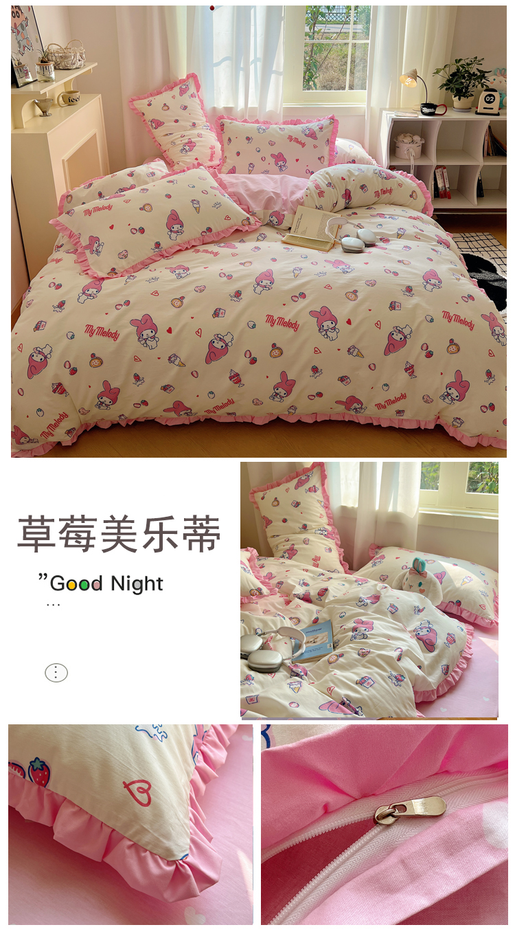 商品名称:(总)三朵家纺 2023新款全棉花边款三丽鸥系列四件套