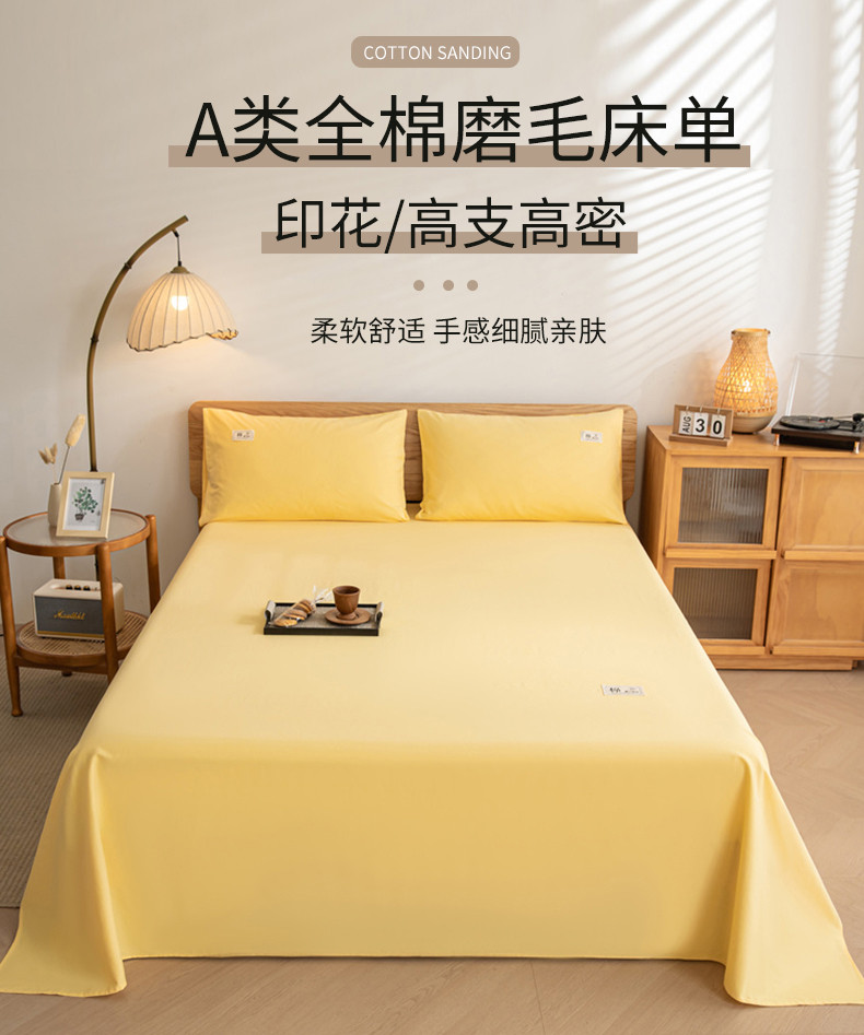 当前位置: 91家纺网 > 商品网购 > 床上用品 > 床单 > 恋人优选2023新款纯棉磨毛床单全棉宿舍单人被单纯色枕套三件套 魅力黄