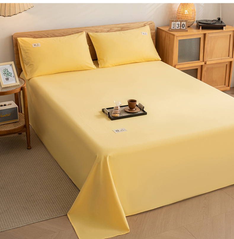 恋人优选2023新款纯棉磨毛床单全棉宿舍单人被单纯色枕套三件套 魅力黄