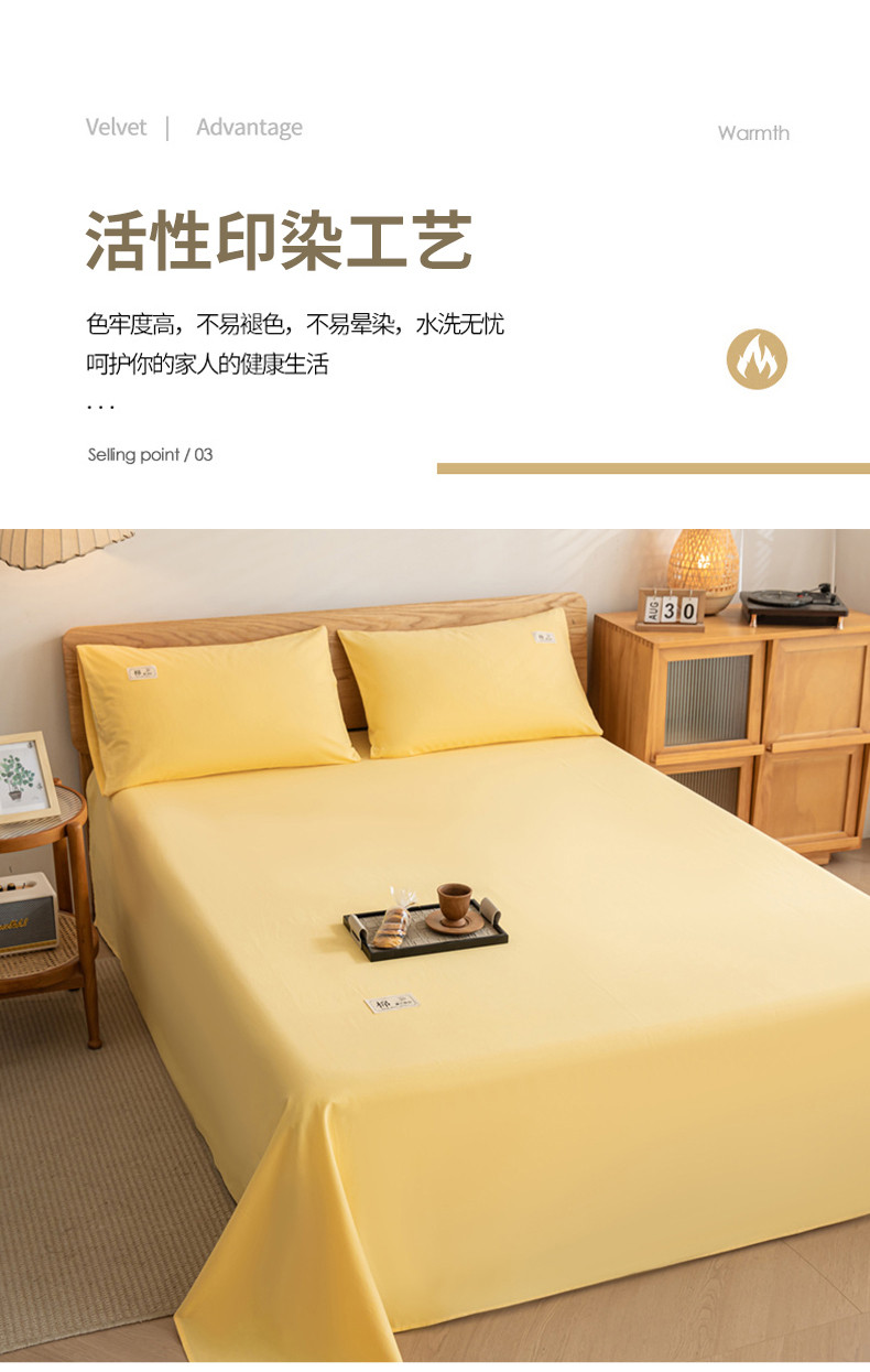 • 91家纺网 家纺一手货源 找家纺 恋人优选2023新款纯棉磨毛床单全棉宿舍单人被单纯色枕套三件套 魅力黄