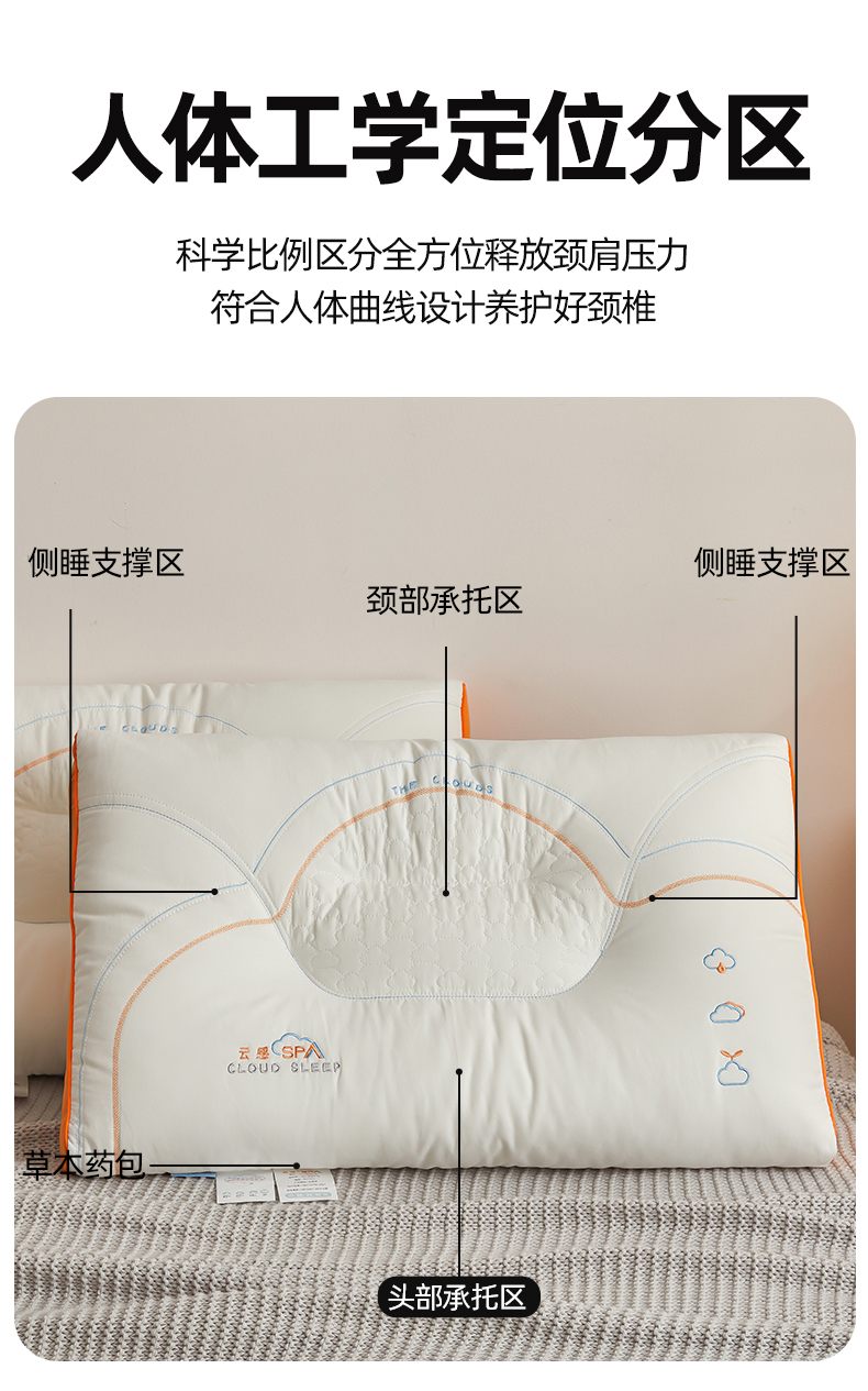 商品名称:纽乐家纺 2023新款云感spa分区护肩枕 云感spa分区护肩枕-橙色48*74cm/只