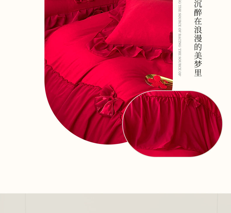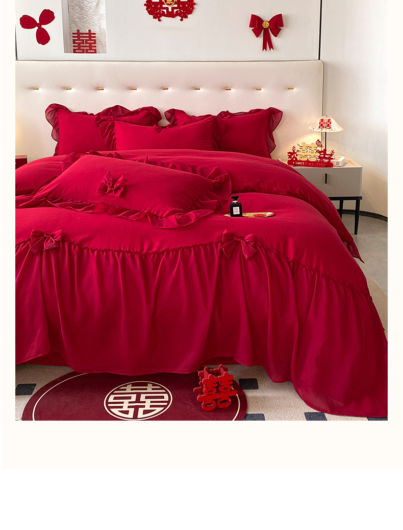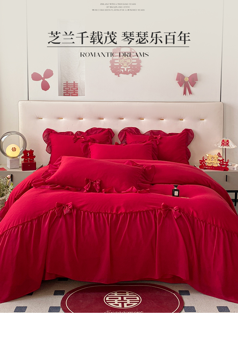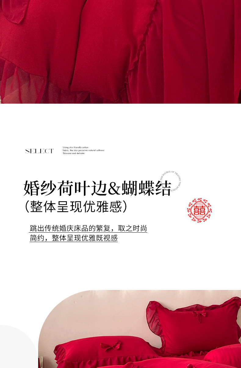 商品名称:(总)苏源家居 2024新款亲肤棉婚纱荷叶边蝴蝶结四件套