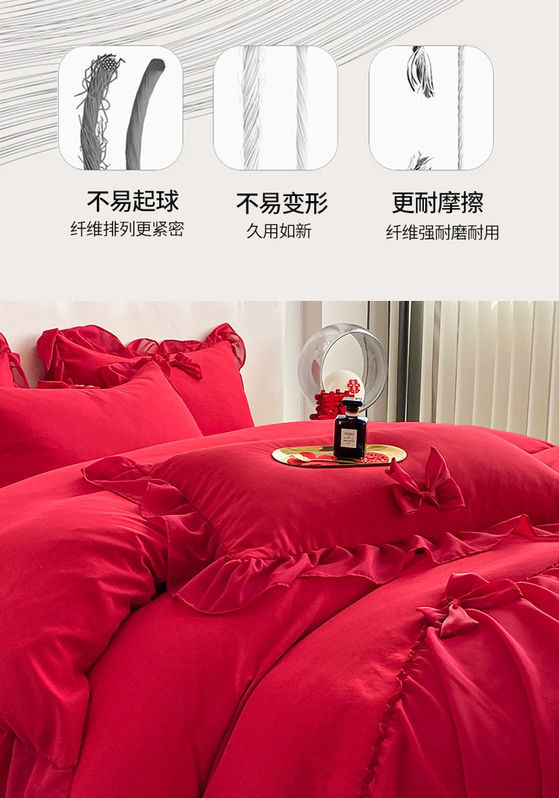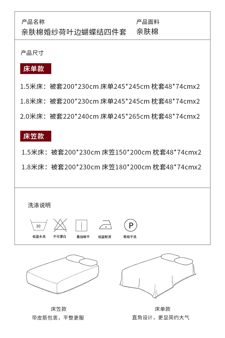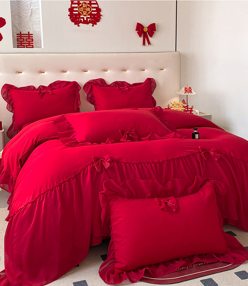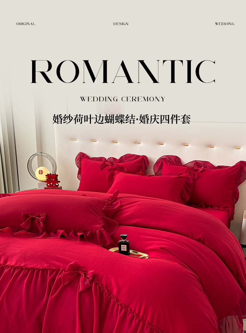 商品名称:(总)苏源家居 2024新款亲肤棉婚纱荷叶边蝴蝶结四件套