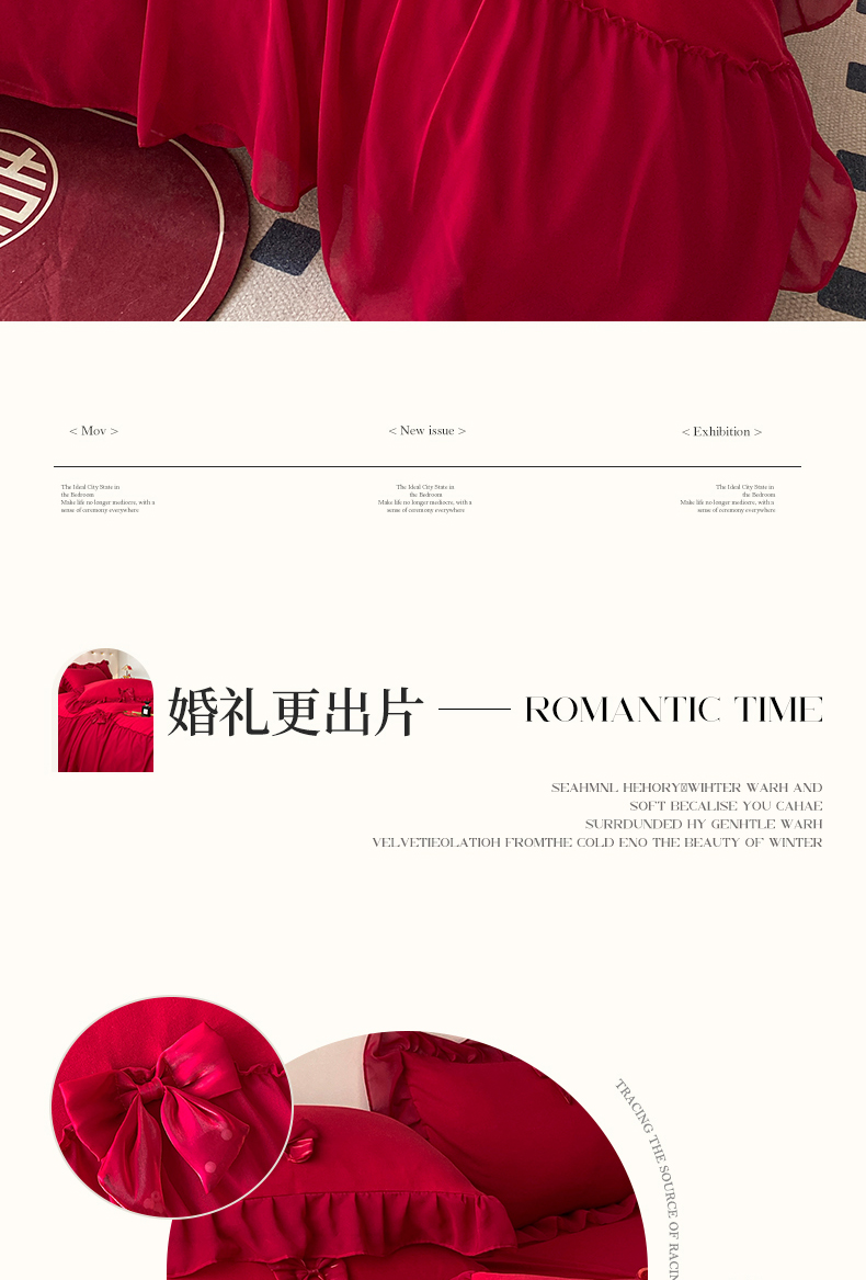 (总)苏源家居 2025新款婚庆加厚牛奶绒荷叶边刺绣结婚四件套,绒-喜愿-红色,绒-喜愿-金色