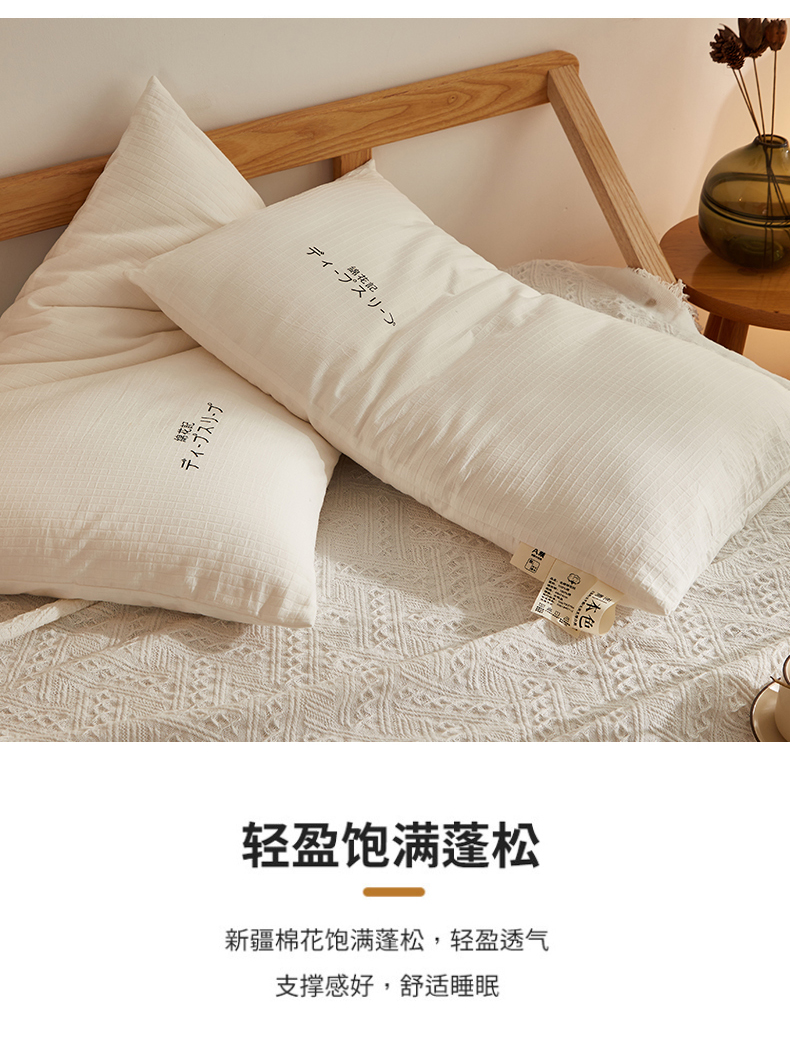 a类全棉华夫格新疆棉花枕 可拆洗全棉花填充低枕枕芯护颈椎助睡眠儿童枕头