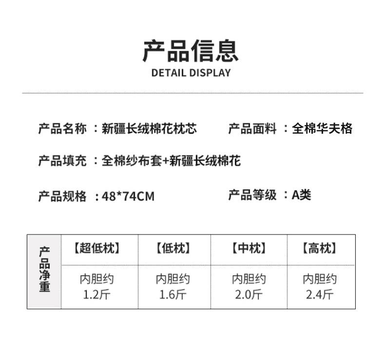 a类新疆棉花枕头可拆洗全棉花填充低枕枕芯护颈椎助睡眠儿童枕头,超低枕【内胆约1.2斤】,低枕【内胆约1.6斤】,中枕【内胆约2斤】,高枕【内胆约2.4斤】