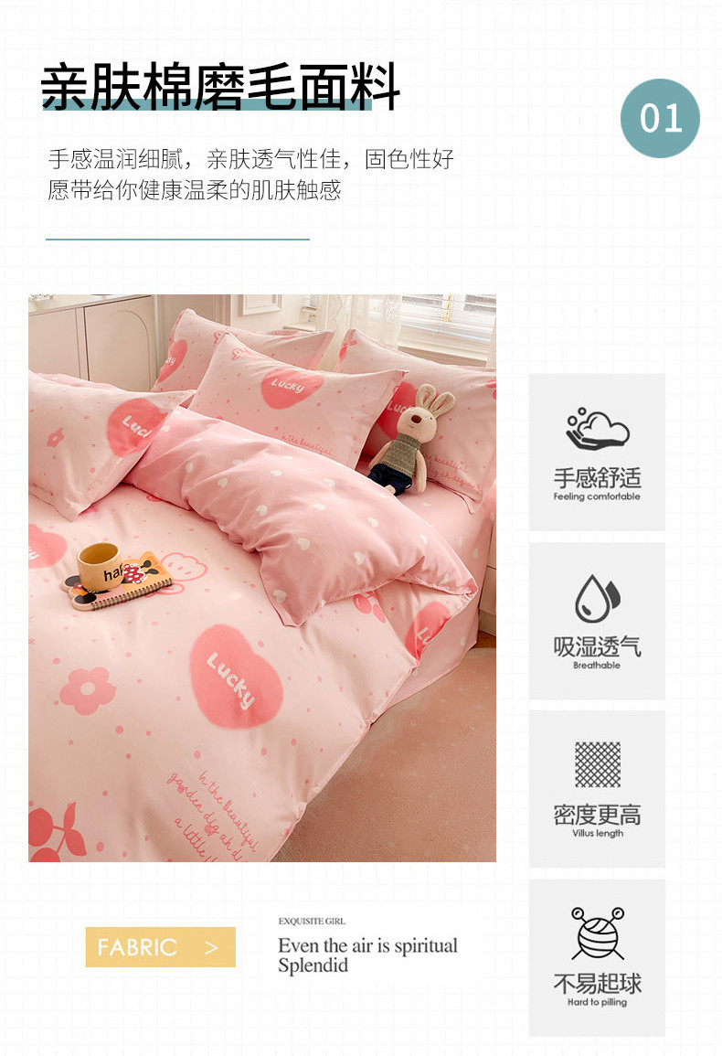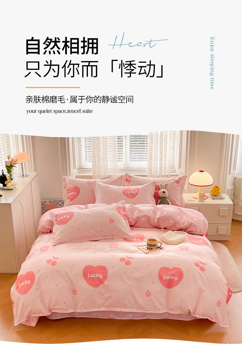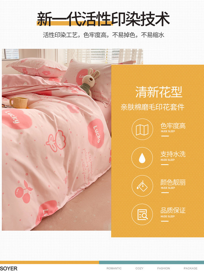 世爵家纺 2023新款亲肤印花磨毛四件套 甜心樱桃