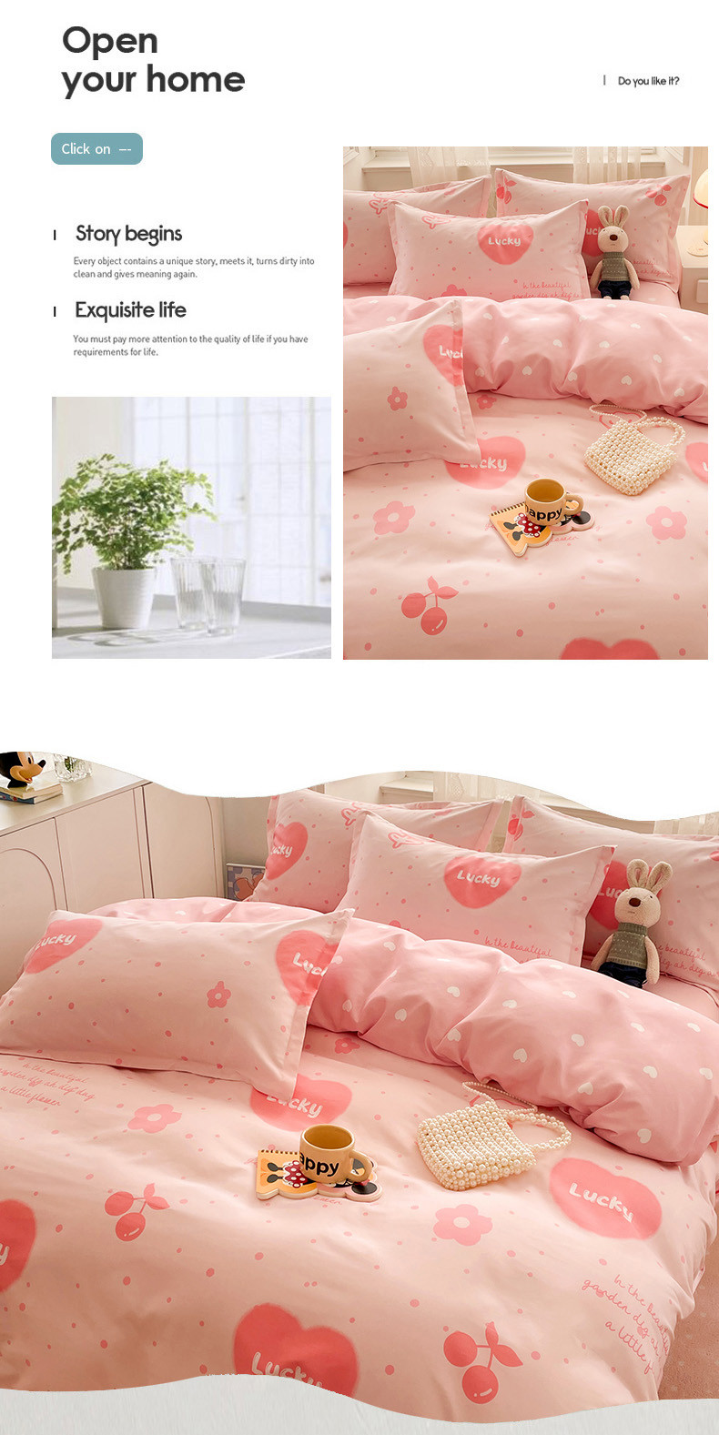 商品名称:世爵家纺 2023新款亲肤印花磨毛四件套 甜心樱桃