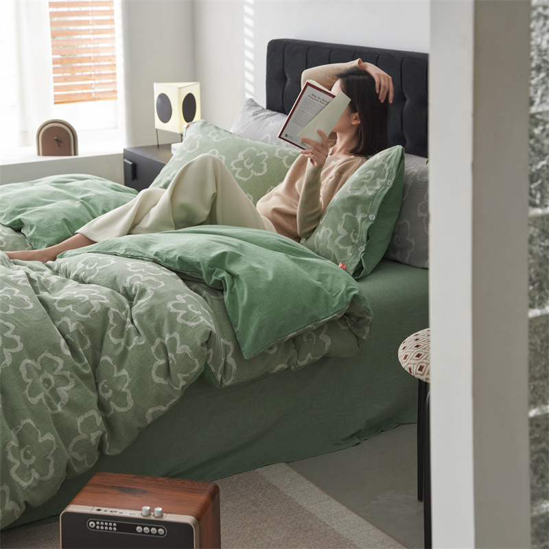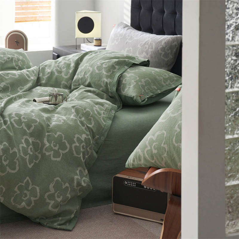 商品名称:安莱生活 2024新款双层纱大提花悠然纽扣宽边工艺款 悠然-嫩绿