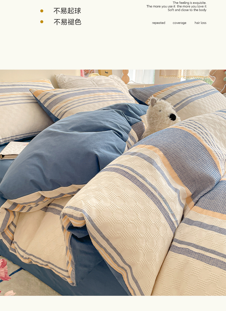 (总)雅居纺家纺 2022新款全棉华夫格普通款四件套,焦糖,米驼,奶油白,柔粉,深灰,雾蓝,月灰