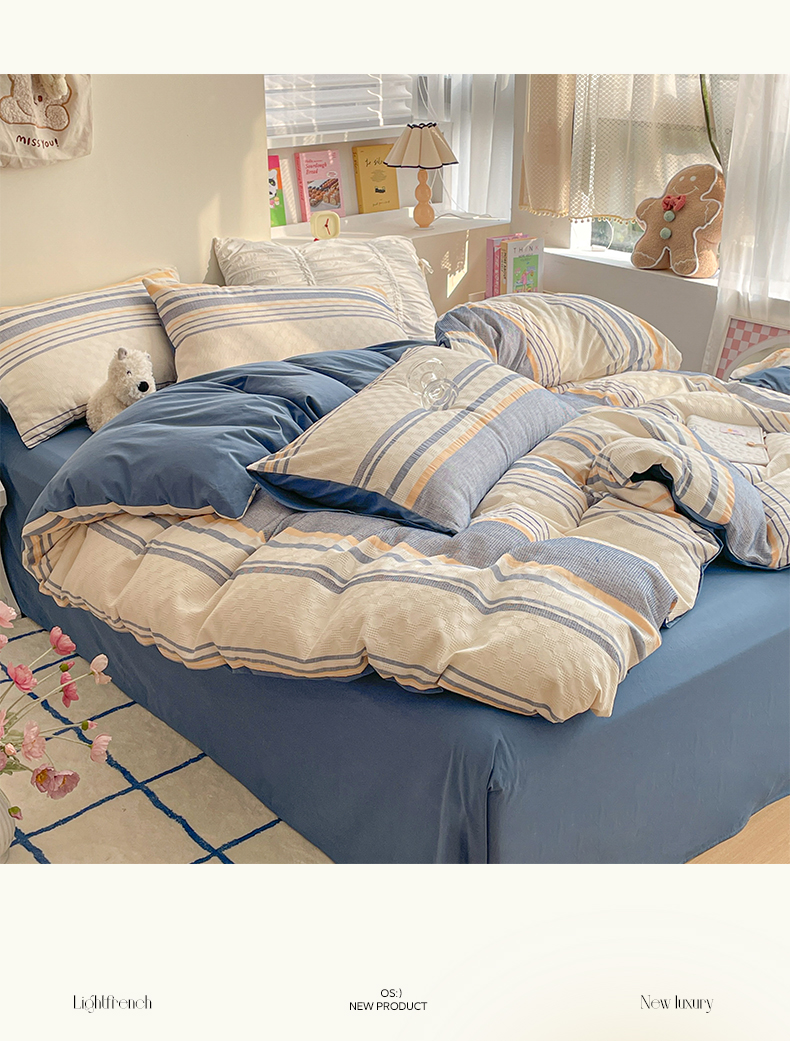 雅居纺家纺 2024新款全棉华夫格提花四件套-简希 简希-深蓝