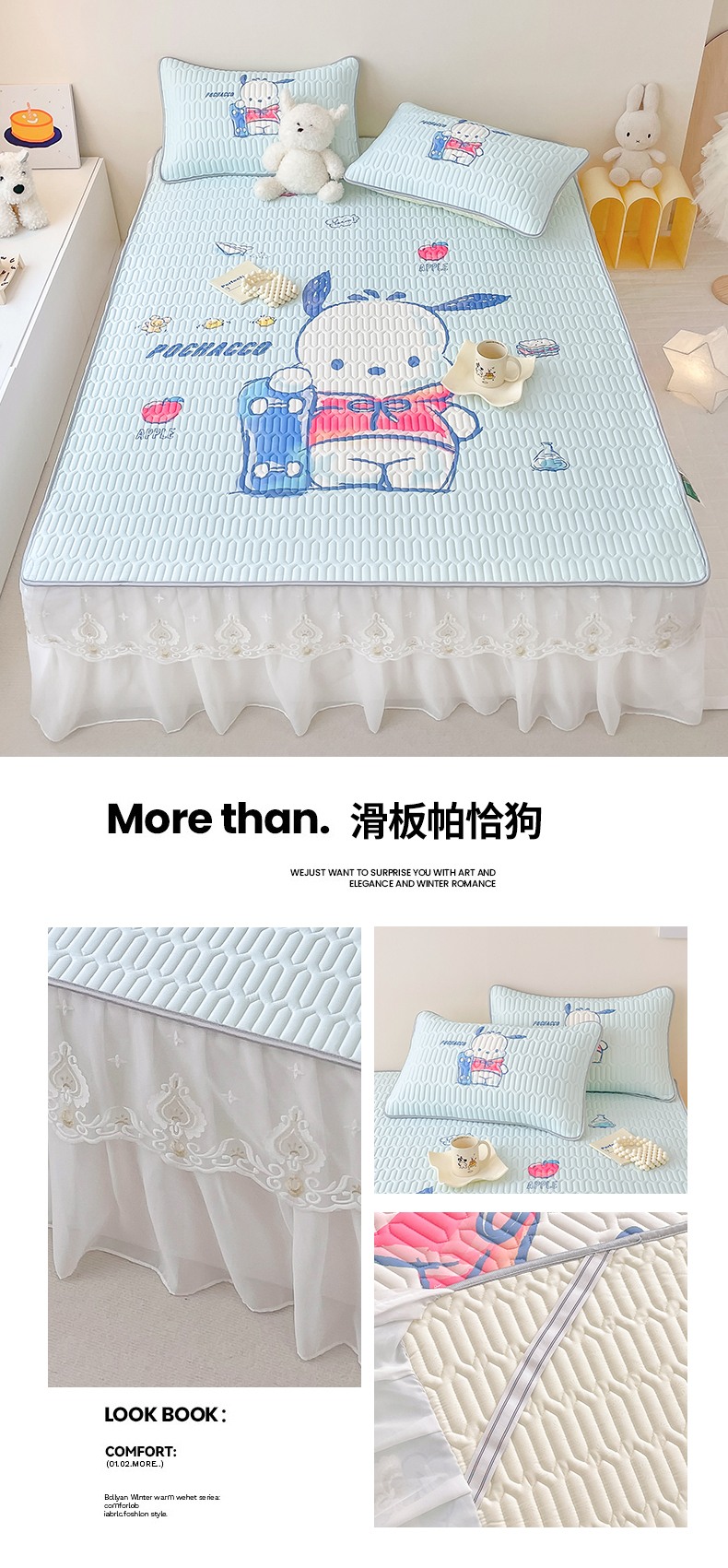 商品名称:米帛家纺 2024新款大版三丽鸥A类凉感丝乳胶凉席-床裙款 滑板帕恰狗