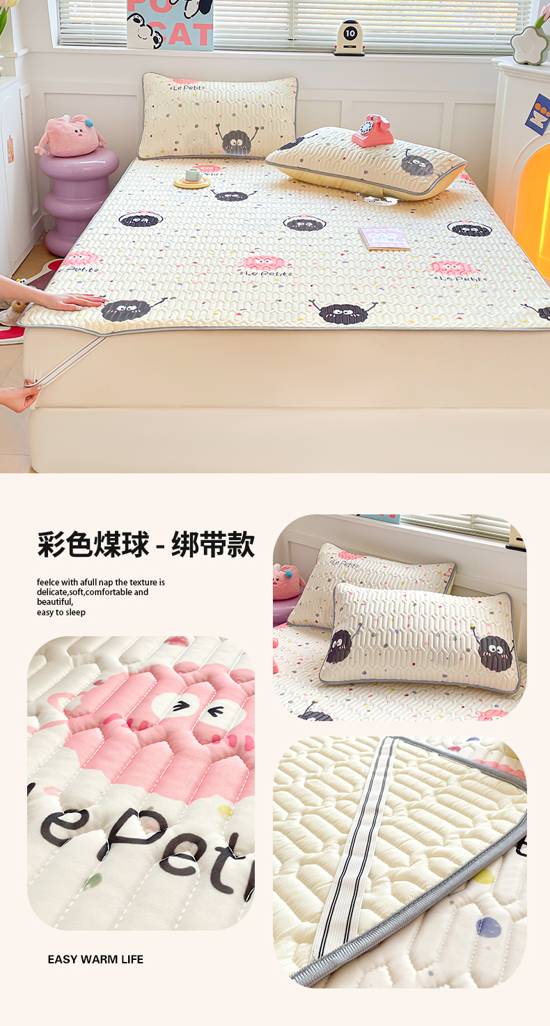商品名称:米帛家纺 2024新款A类凉感丝卡通乳胶凉席-绑带款 彩色煤球