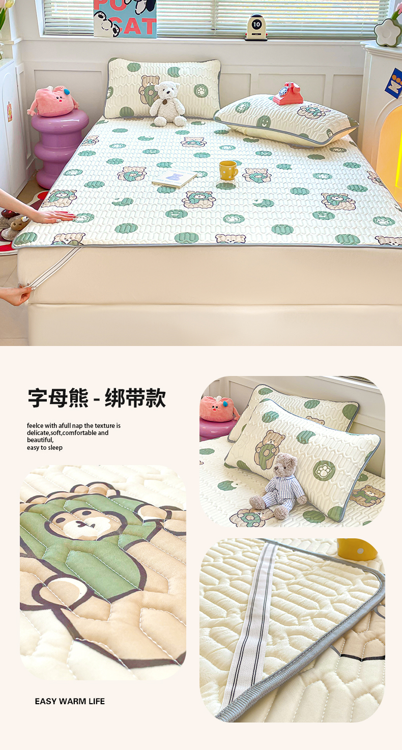 商品名称:米帛家纺 2024新款A类凉感丝卡通乳胶凉席-绑带款 字母熊