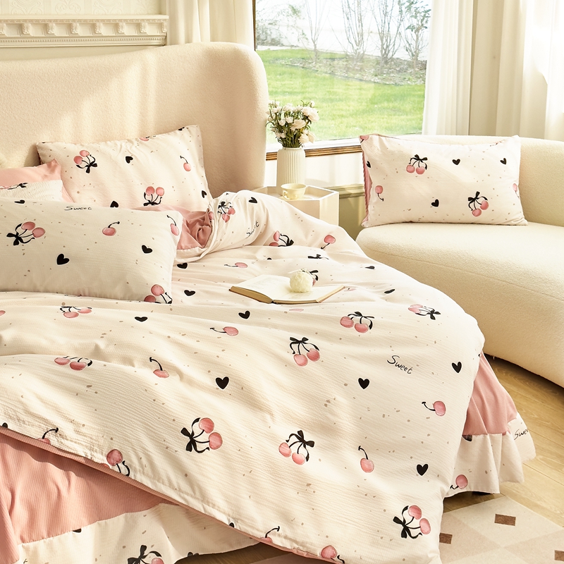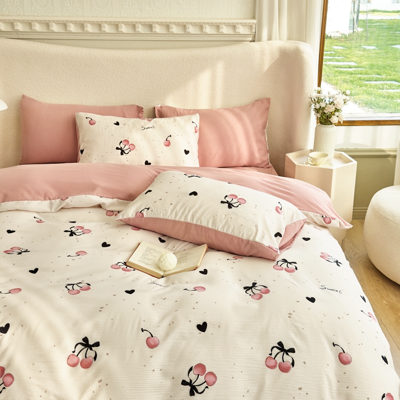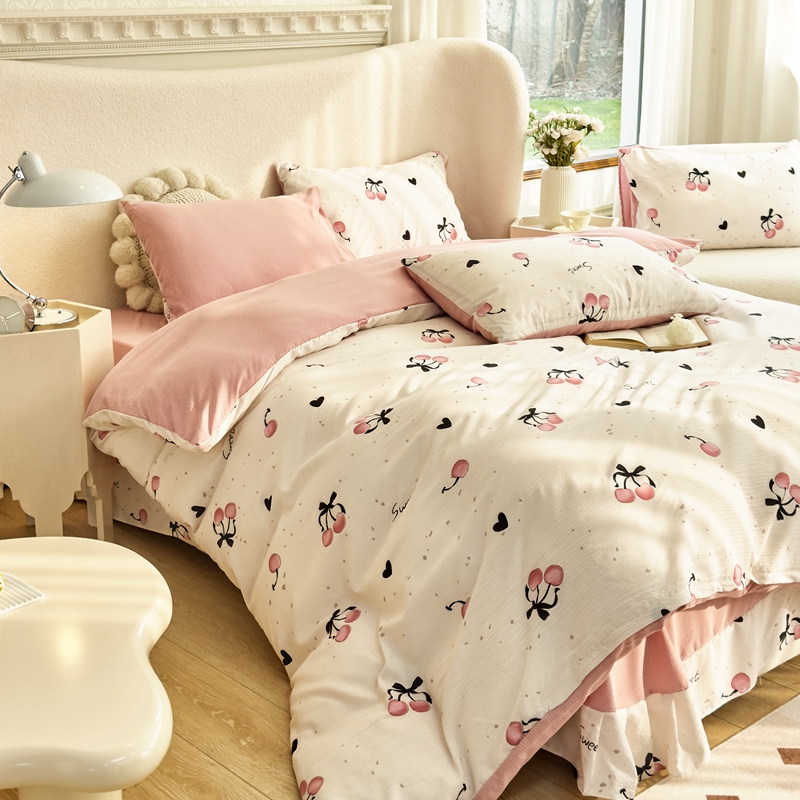 商品名称:富之航家纺 2024新款提花泡泡棉四件套 粉樱桃
