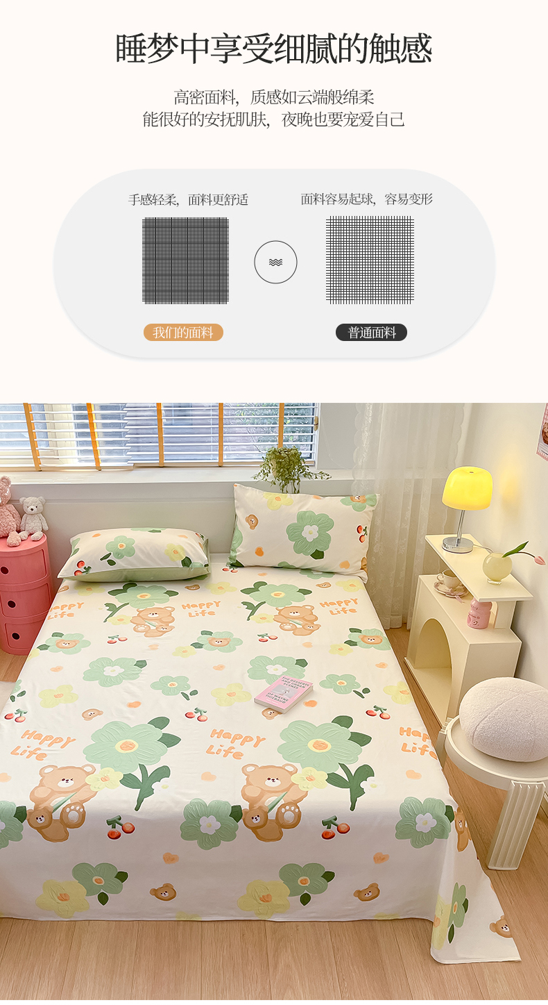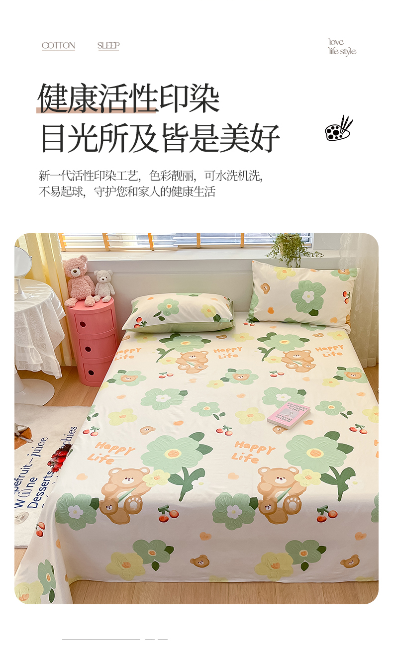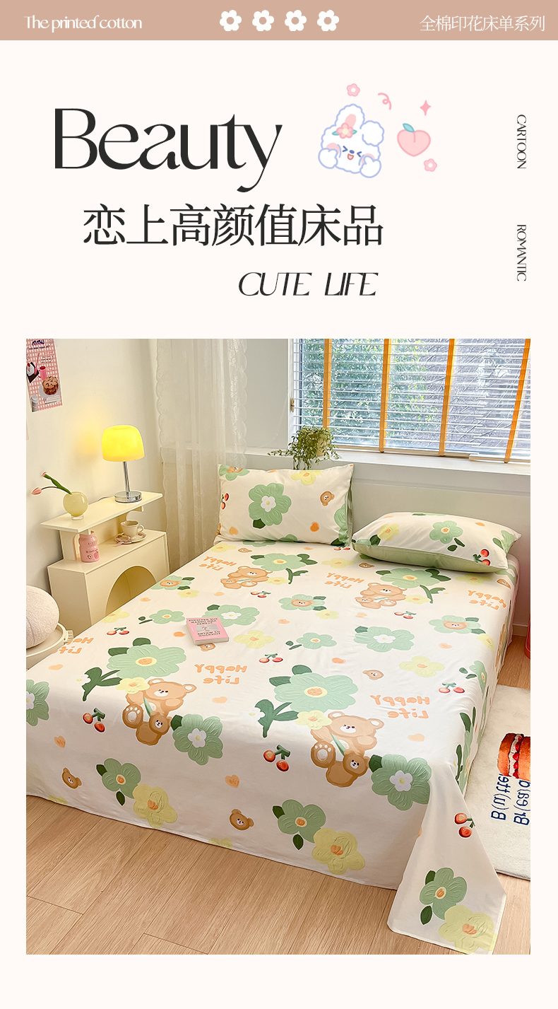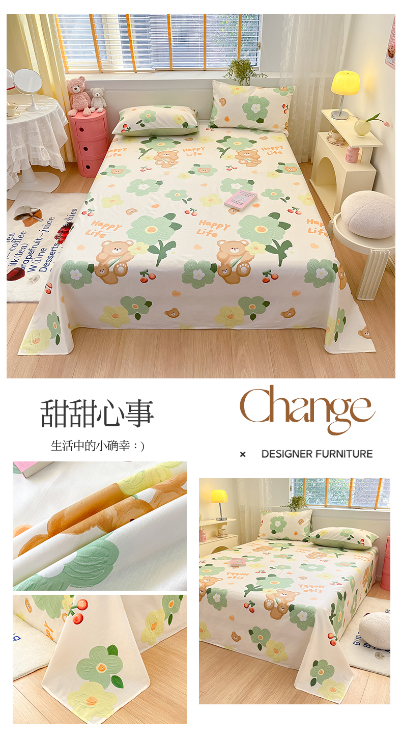 蓝邻 2024新款全棉单品系列单床单 甜甜心事