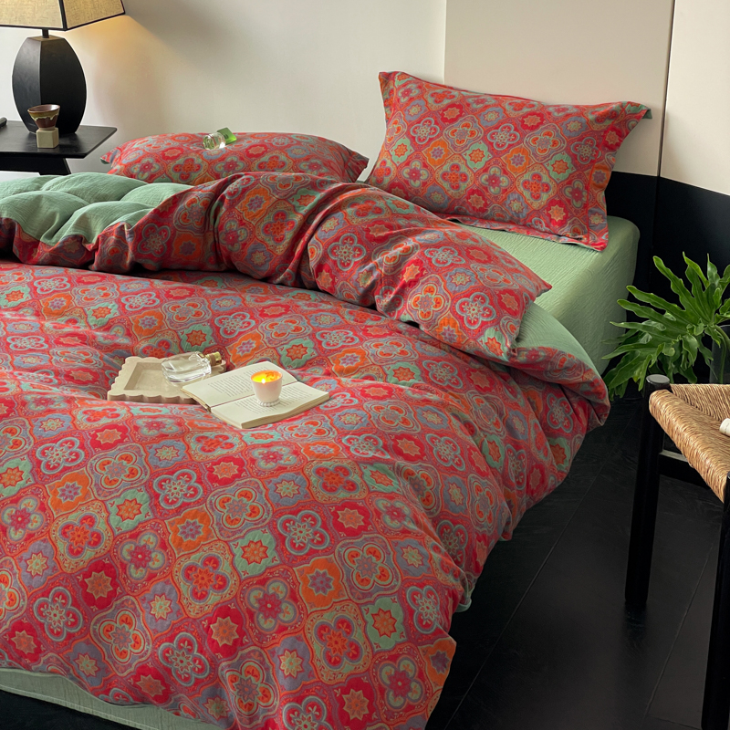 商品名称:睡棉坊 2024新款全棉色织提花双层纱复古单被套 百样