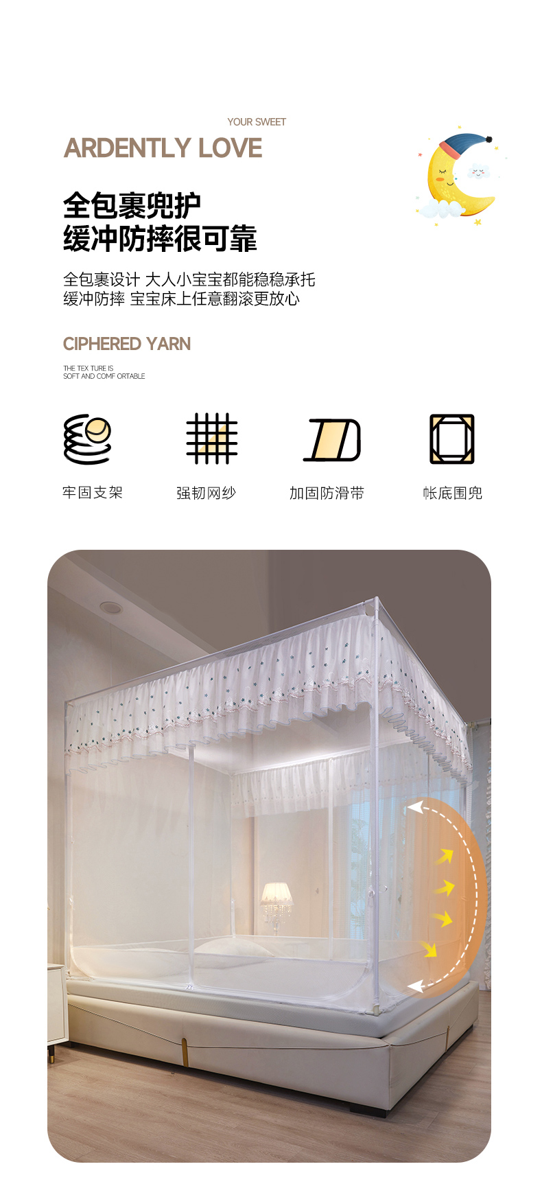 (总)富莱星蚊帐 2025新款框架防摔坐床蚊帐,绿色,粉色,黄红色,黄色,蓝色,紫色