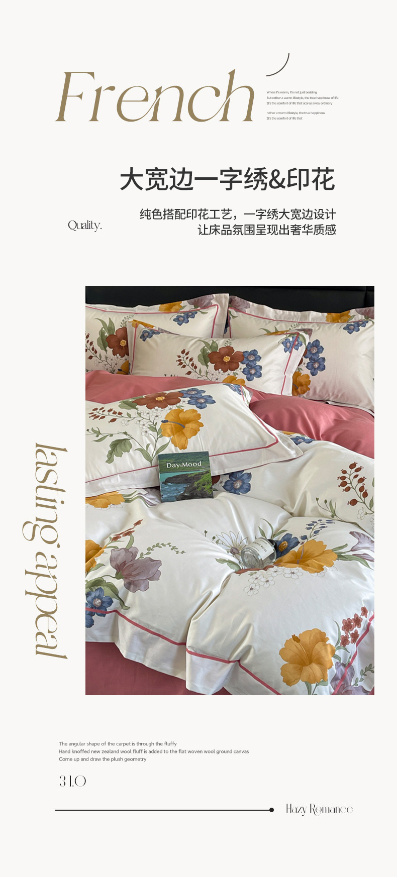 当前位置: 91家纺网 > 商品网购 > 床品套件 > 四件套 > 全棉普通四件套 > 7V 2024新款轻奢13376纯棉全棉喷气四件套 兰黛-米