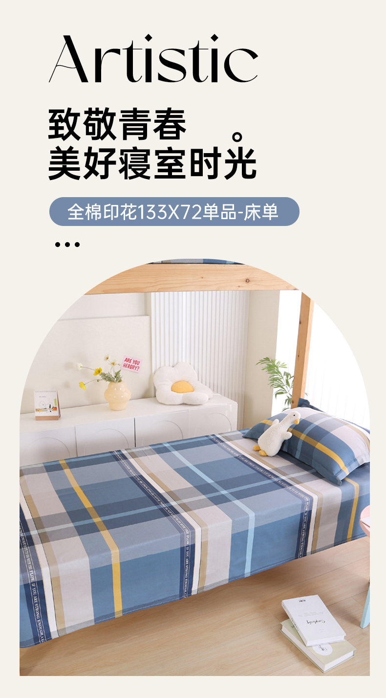 商品名称:凯森家纺 2024新款全棉13372学生床单三件套直播代发 卡乐-蓝