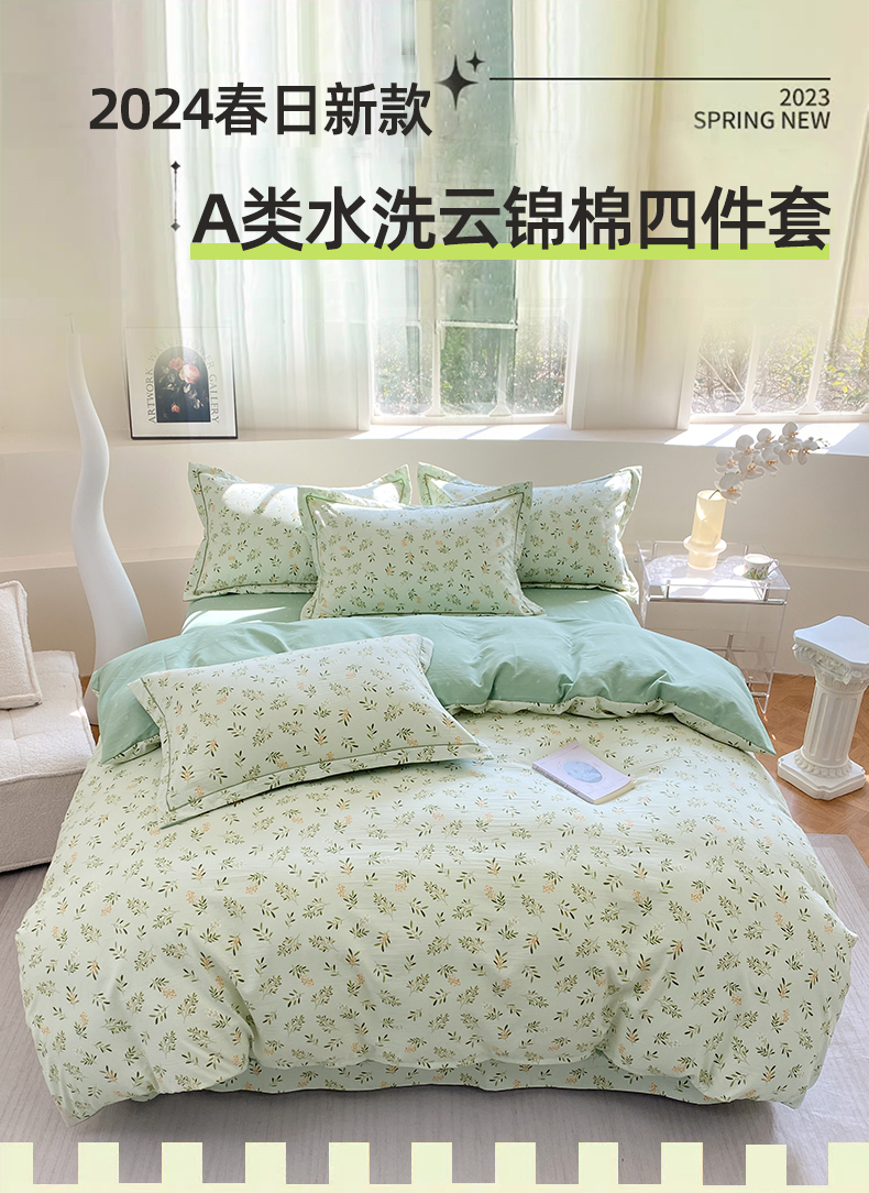 当前位置: 91家纺网 > 商品网购 > 床品套件 > 四件套 > 全棉普通四件套 > 家贝爱 2024春日新款A类精选高支高密水洗云锦棉四件套 春意