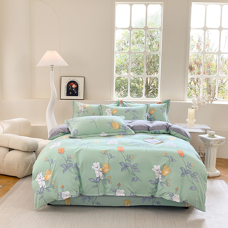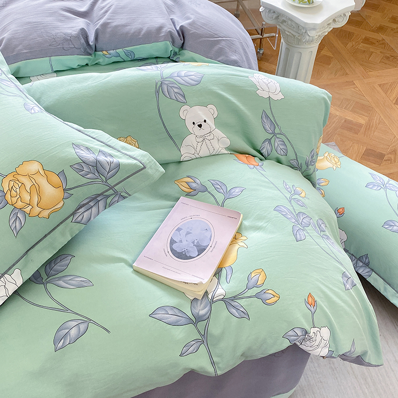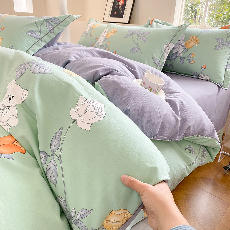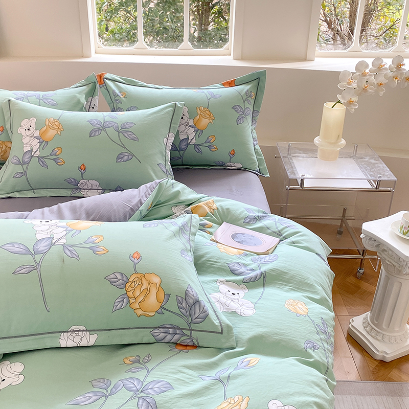 当前位置: 91家纺网 > 商品网购 > 床品套件 > 四件套 > 全棉普通四件套 > 家贝爱 2024春日新款A类精选高支高密水洗云锦棉四件套 玫瑰小熊