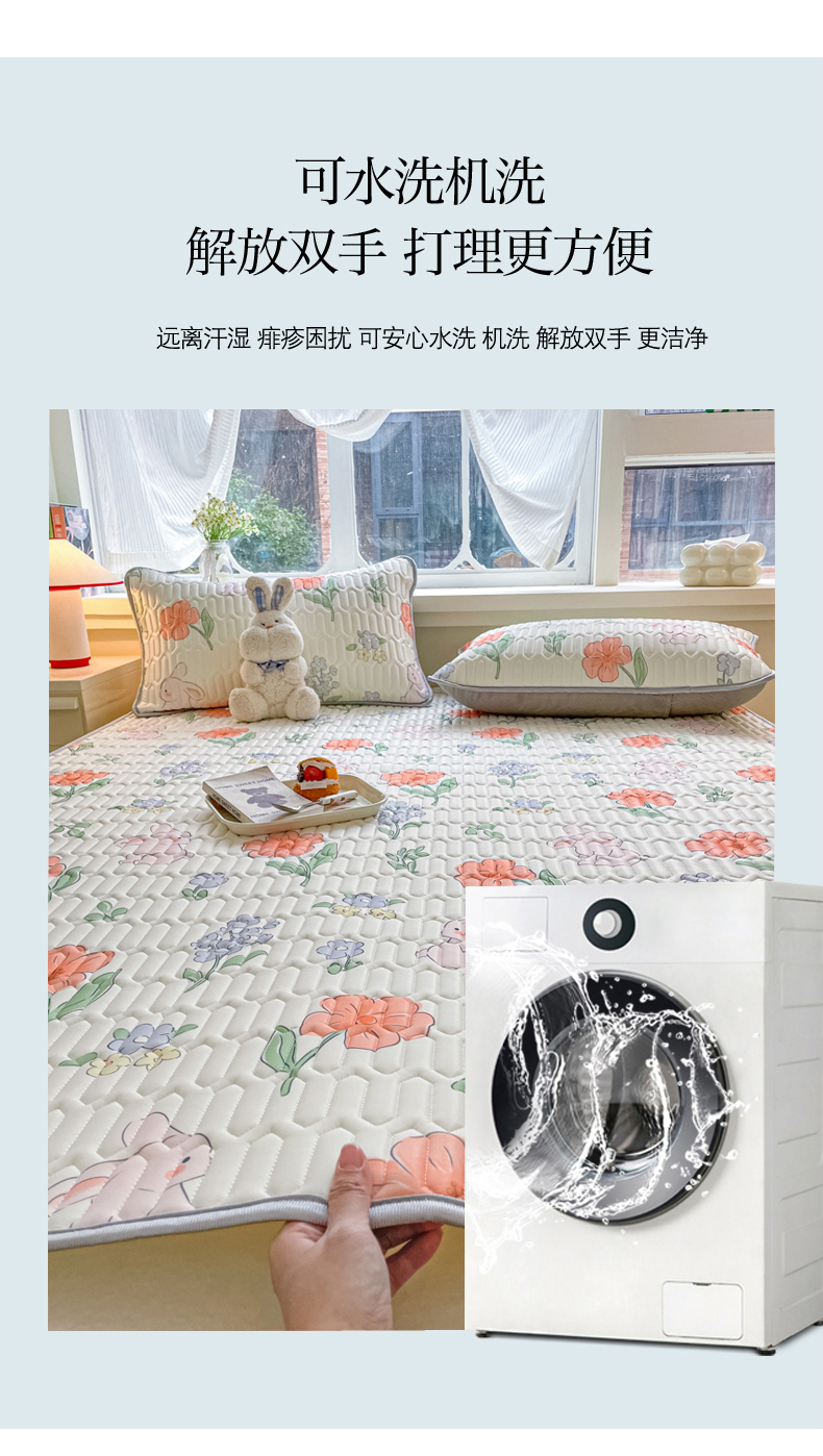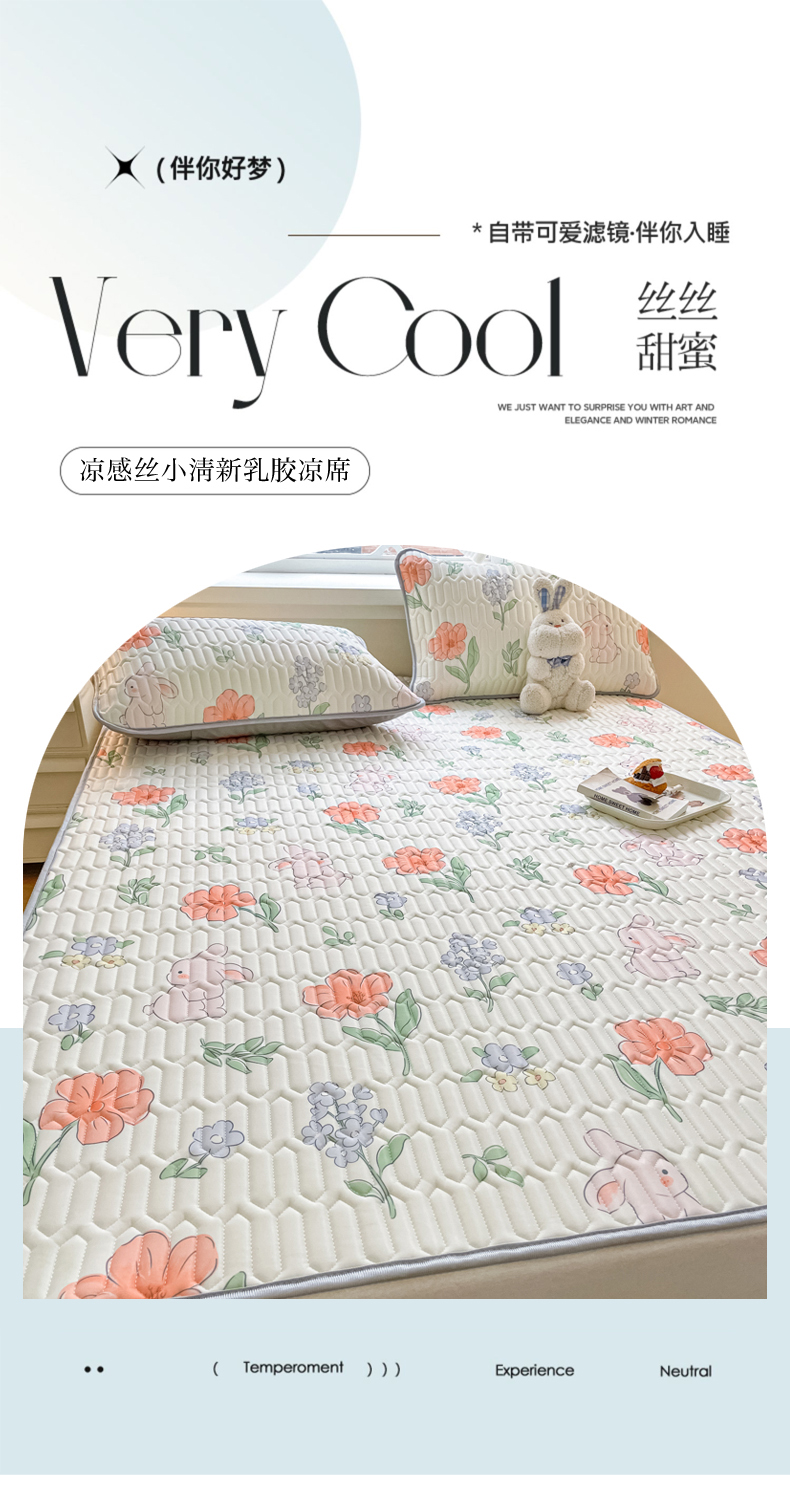 商品名称:柒月家居 2024新款贴身舒适厚度0.5小清新乳胶凉席 花园兔