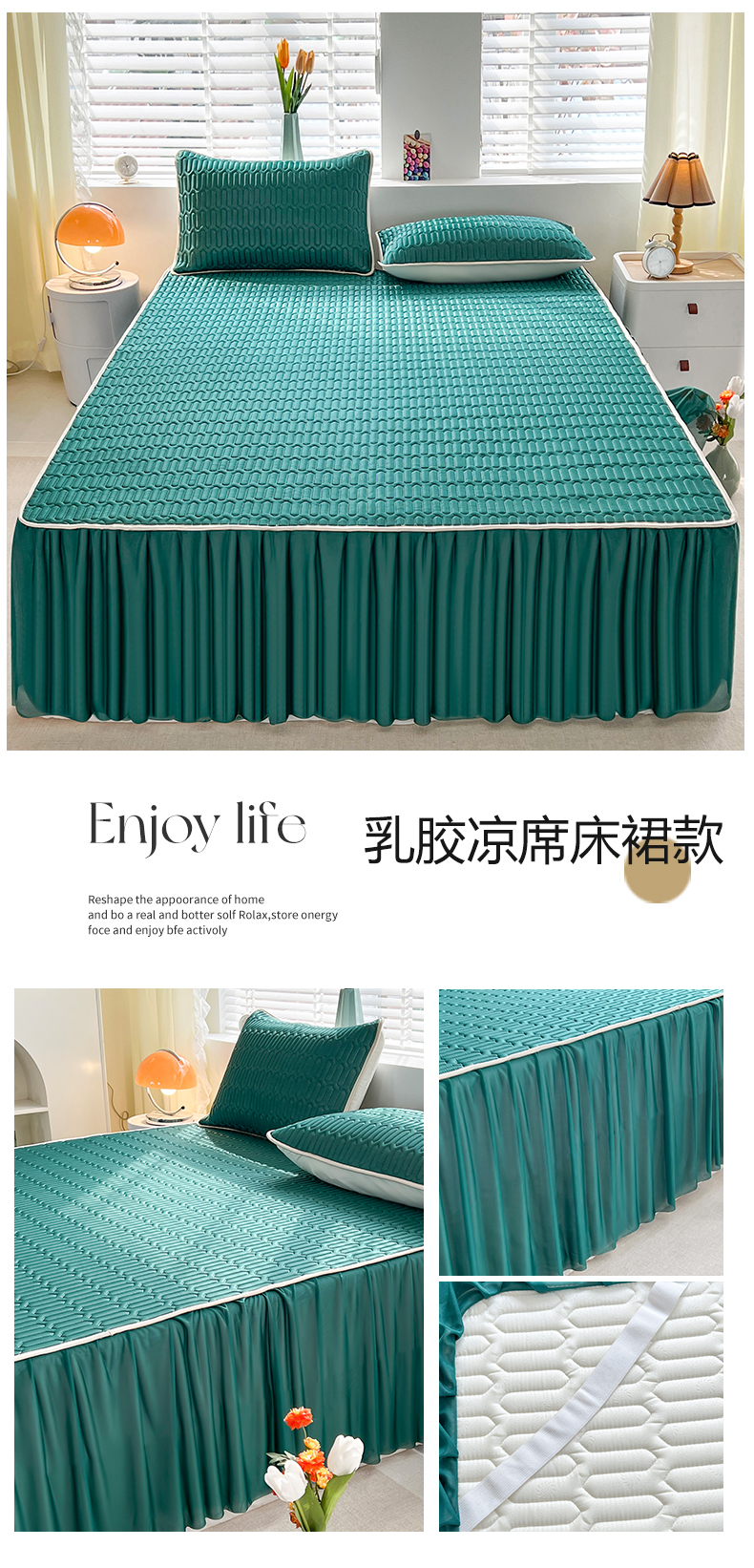 商品名称:爱洛 2024新款纯色床裙款乳胶凉席三件套凉感丝乳胶席 墨绿